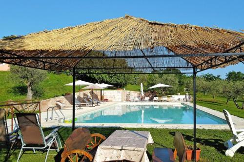 Country house "L'Orto e le Rose". 2 houses in the residence. 3 apartments in the residence. 3 km from the centre of Bolsena, 25 km from the centre of Orvieto, 100 km from the centre of Roma, 900 m from the lake, in the countryside. For shared use: property 2'000 m2 with lawn and trees, orchard, lawn for sunbathing, swimming pool (16 x 8 m, depth 150 cm, seasonal availability: 16.May. - 03.Oct.). Outdoor shower, barbecue, children's playground, roofed, parking on the premises. Shop 3 km, supermarket 4 km, bus stop 3.5 km, sandy beach "Lago di Bolsena" 900 m. Golf course (9 hole) 15 km. Please note: the owner lives on the same property. Additional accommodations can be booked.