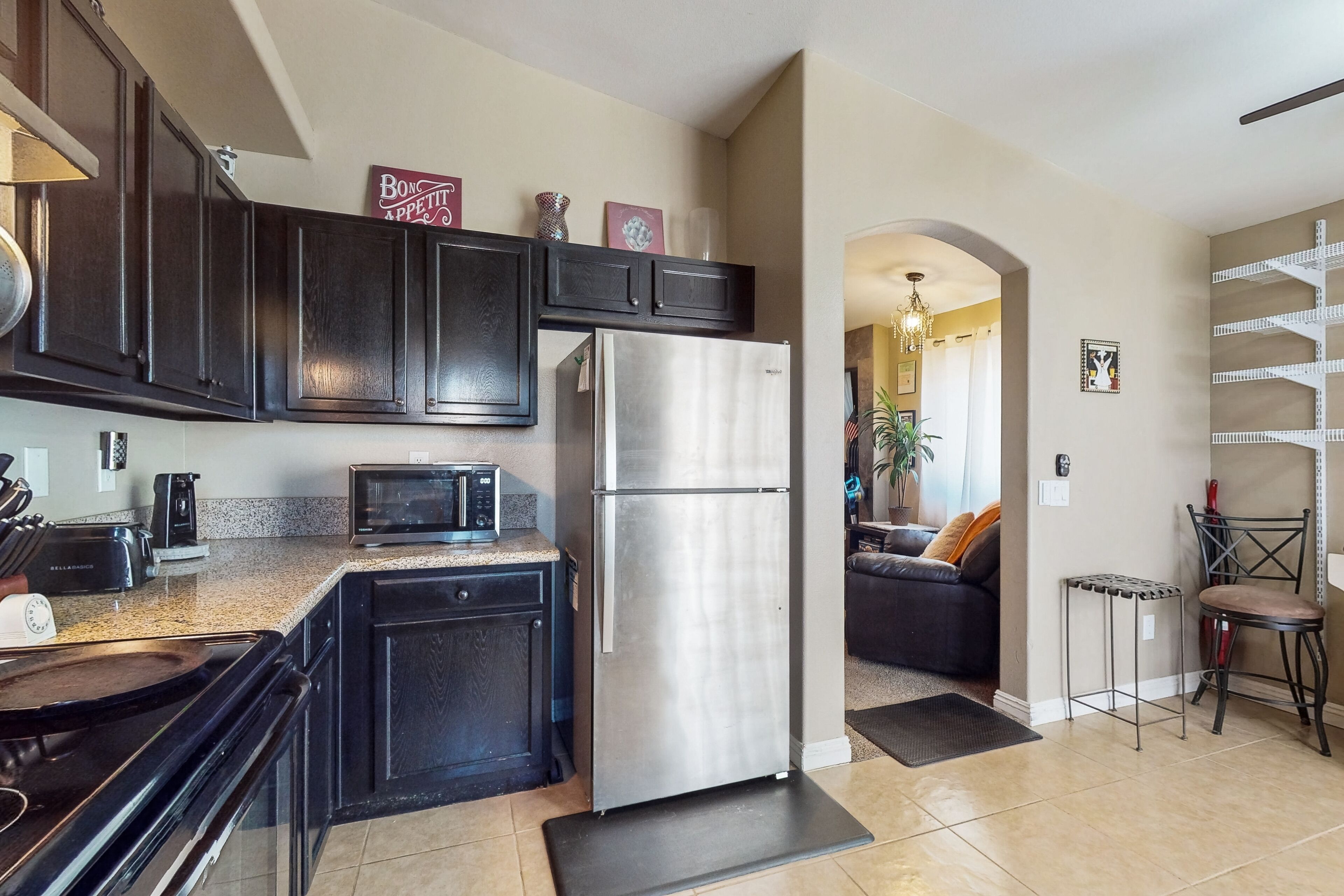 Step outside to relax on the patio with a gas grill and patio furniture, or gather around the fire pit to take in the breathtaking views of the desert landscape. The enclosed yard provides a safe space for your furry friends to roam, while the well-lit path to the entrance ensures easy access for all guests.