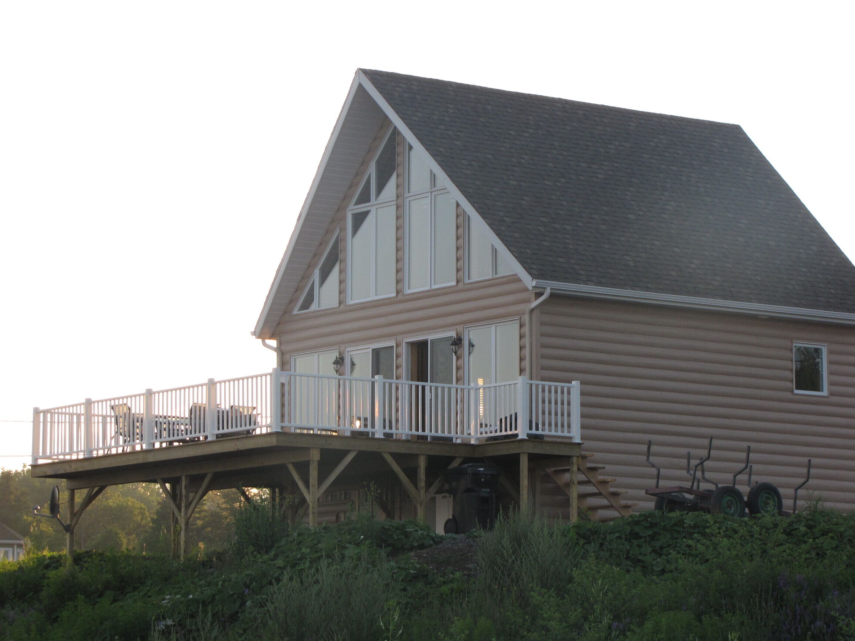 PATIO - One of the best feature of the property is the breathtaking and 180 degrees unobstructed view of the Chaleur Bay from the patio. The patio itself is a massive 1200 sqft of stained wood. It is equipped with a Napoleon BBQ, a 10ft x 12ft gazebo under which sits a ceramic firepit bar with 6 chairs, a ceramic dinner table with 2 outdoor loveseats and a large umbrella.