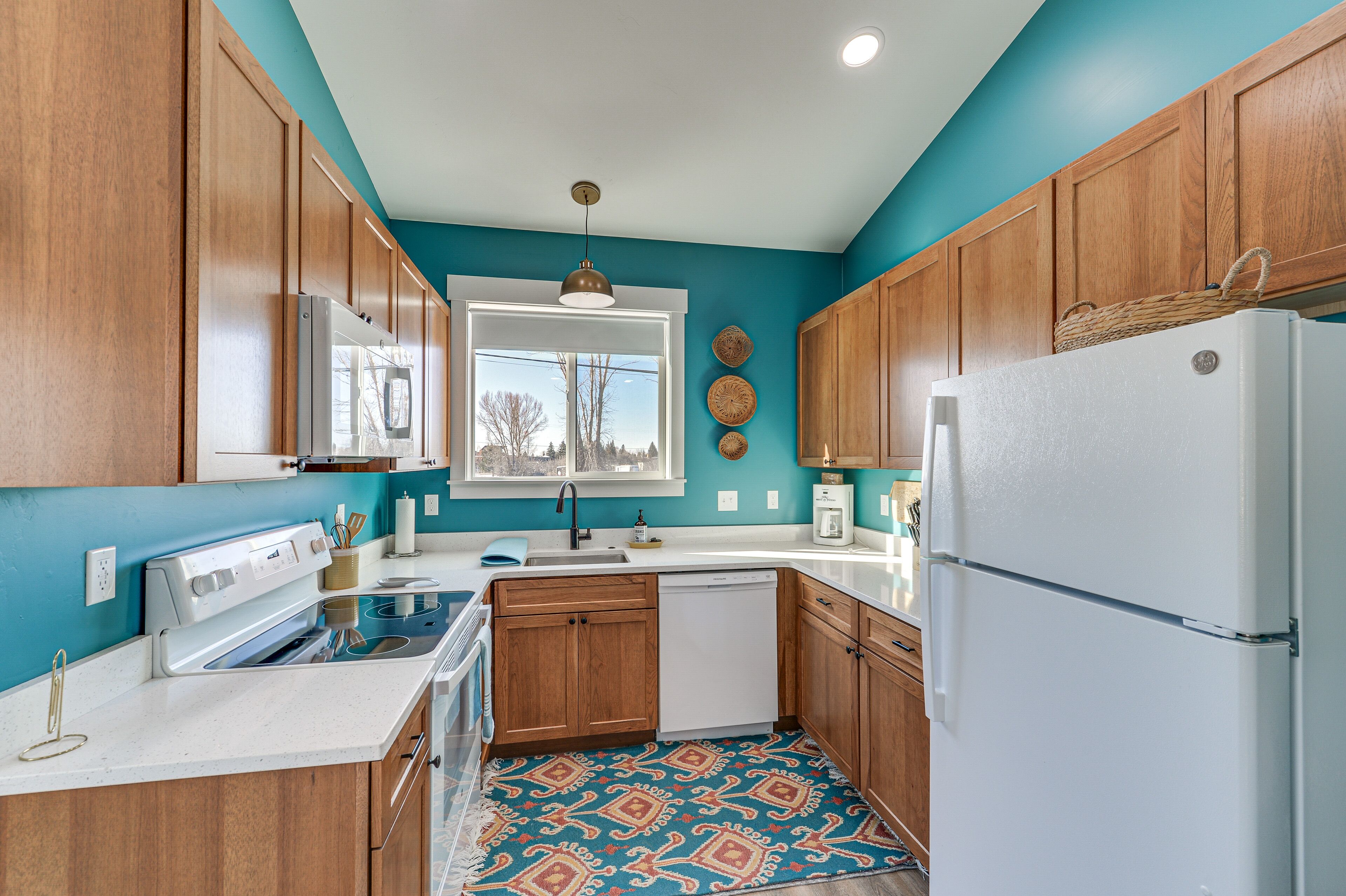 KITCHEN: Refrigerator, microwave, stove/oven, drip + Keurig coffee maker, dishwasher, toaster, garbage disposal, dishware/flatware, cooking basics