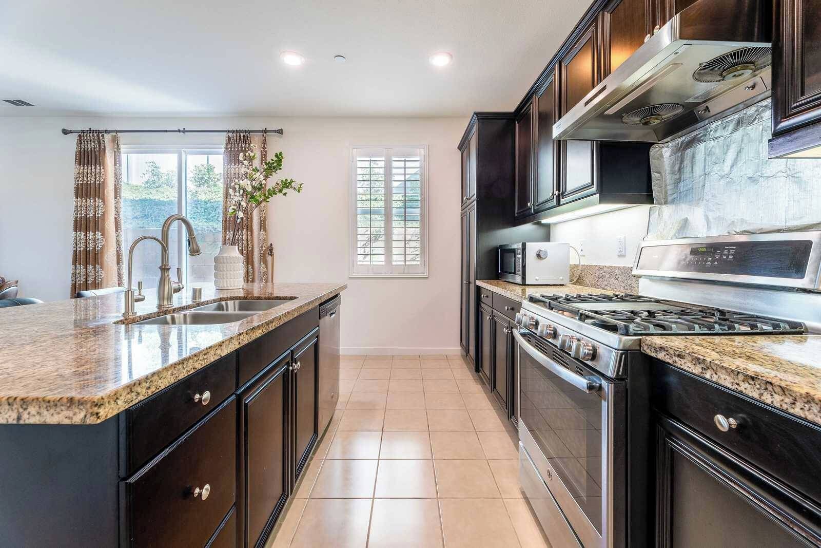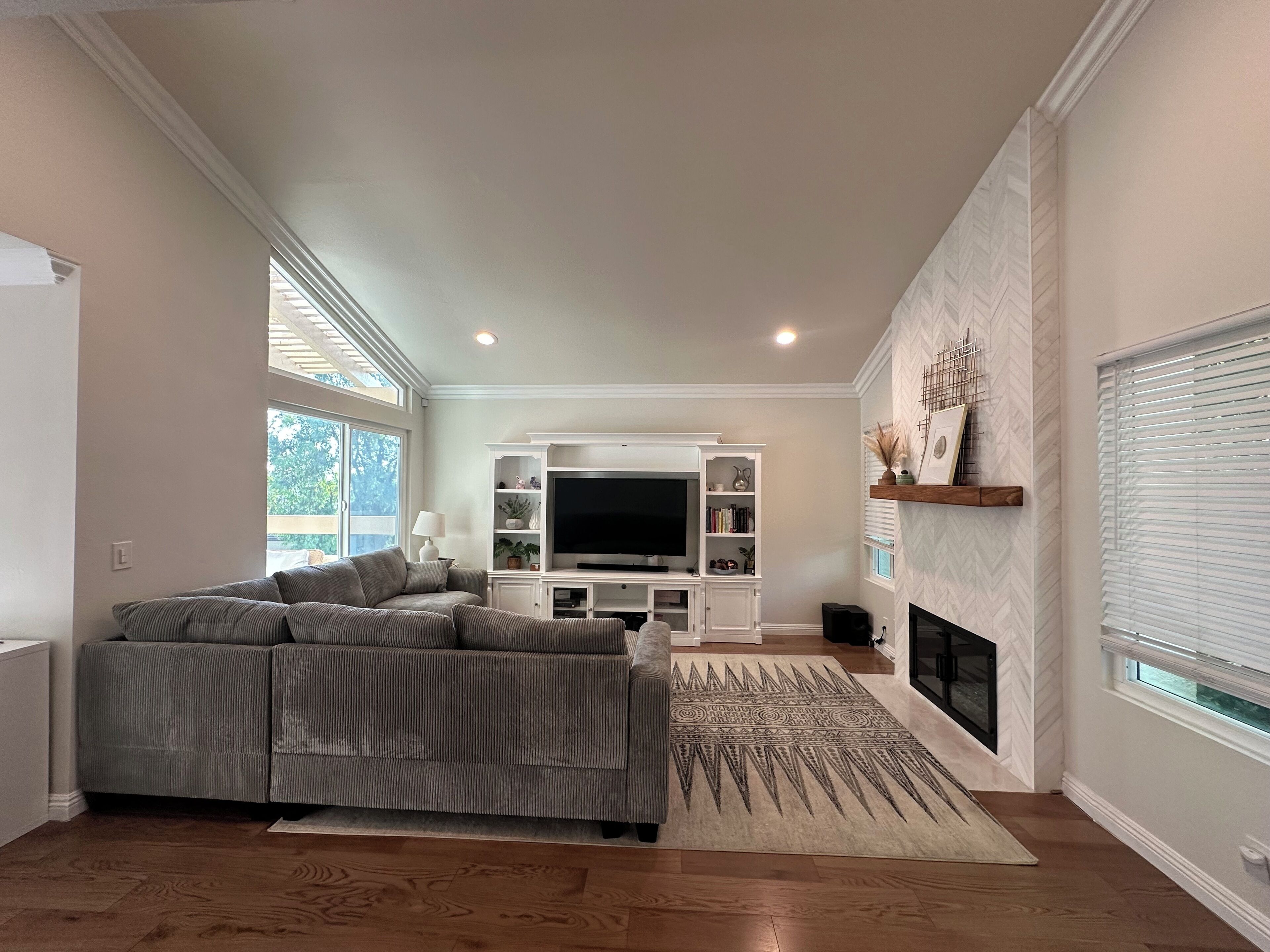 The fully fenced backyard is large and flat, perfect for enjoying the beautiful Orange County weather. The market lighting provides a beautiful ambiance in the evening.