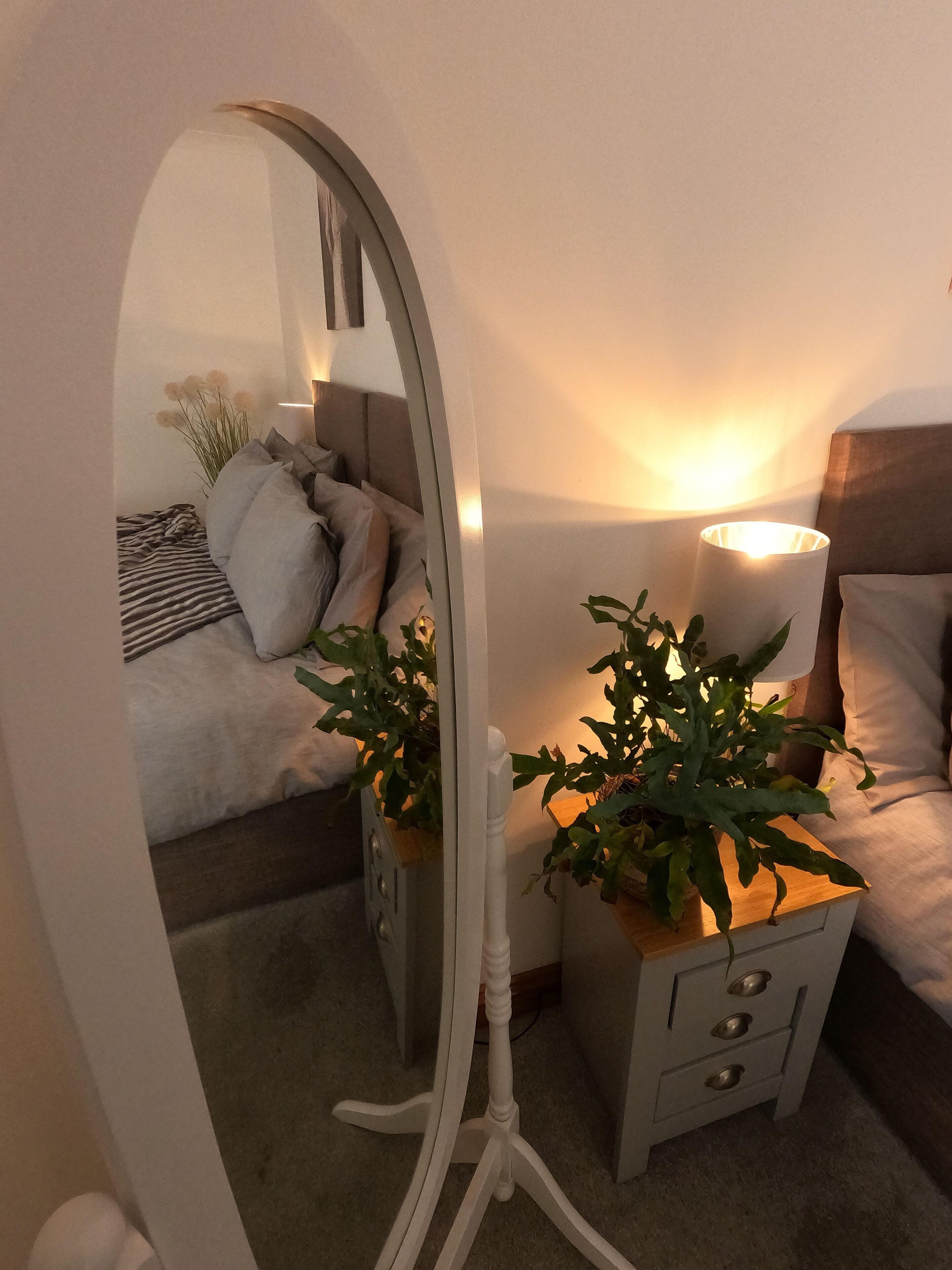 Upstairs, the 3 bedrooms are tastefully decorated with solid oak furniture, cosy lamps and quality curtains. The king size room has en suite shower room. The middle bedroom can be a twin room or a king size room depending on your preference. The third bedroom is a twin room.