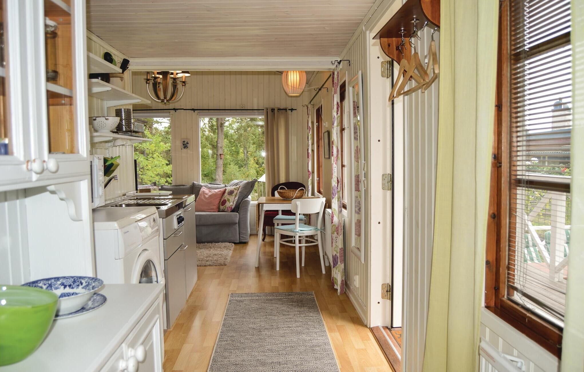 Layout: Annex: (double bed, shower(outside)) Annex: Kitchen(cooker(electric), microwave, fridge(+ freezer)), Living/bed room(TV(swedish TV channels), DVD player), bedroom(double bed), bedroom(2x bunk bed), bathroom(washbasin, toilet(electrish), water from well), washbasin, shower(outside), heating(electric), garden furniture, BBQ, play equipment