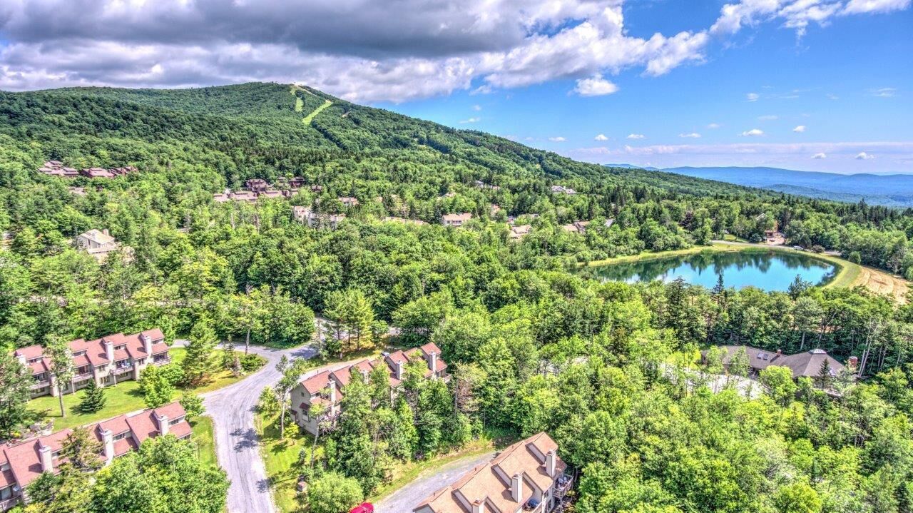 Enjoy this cozy, 2 Bedroom, 1 Bathroom, one-level condominium featuring wonderful views and a Living room with a wood-burning fireplace, Kitchen, and Dining areas, 2 Bedrooms and 1 Full Bathroom. This property is located just outside of the Bromley Village community between the Village and Bromley Mountain at 4362 VT Route 11, Peru, VT 05152. Walk to the ski slopes! Bromley Village is a slopeside community in Peru w/ close access to Manchester (approx. 15 minute), and Londonderry (approx. 10 minute) drives for many restaurant and shopping options. The Village offers a private year-round Clubhouse with Fitness Center, seasonal heated pool, tennis courts, playgrounds, winter sledding hill, and fire pit, as well as a Shuttle Bus in the winter months, which runs to and from the Bromley Mountain Base Lodge.