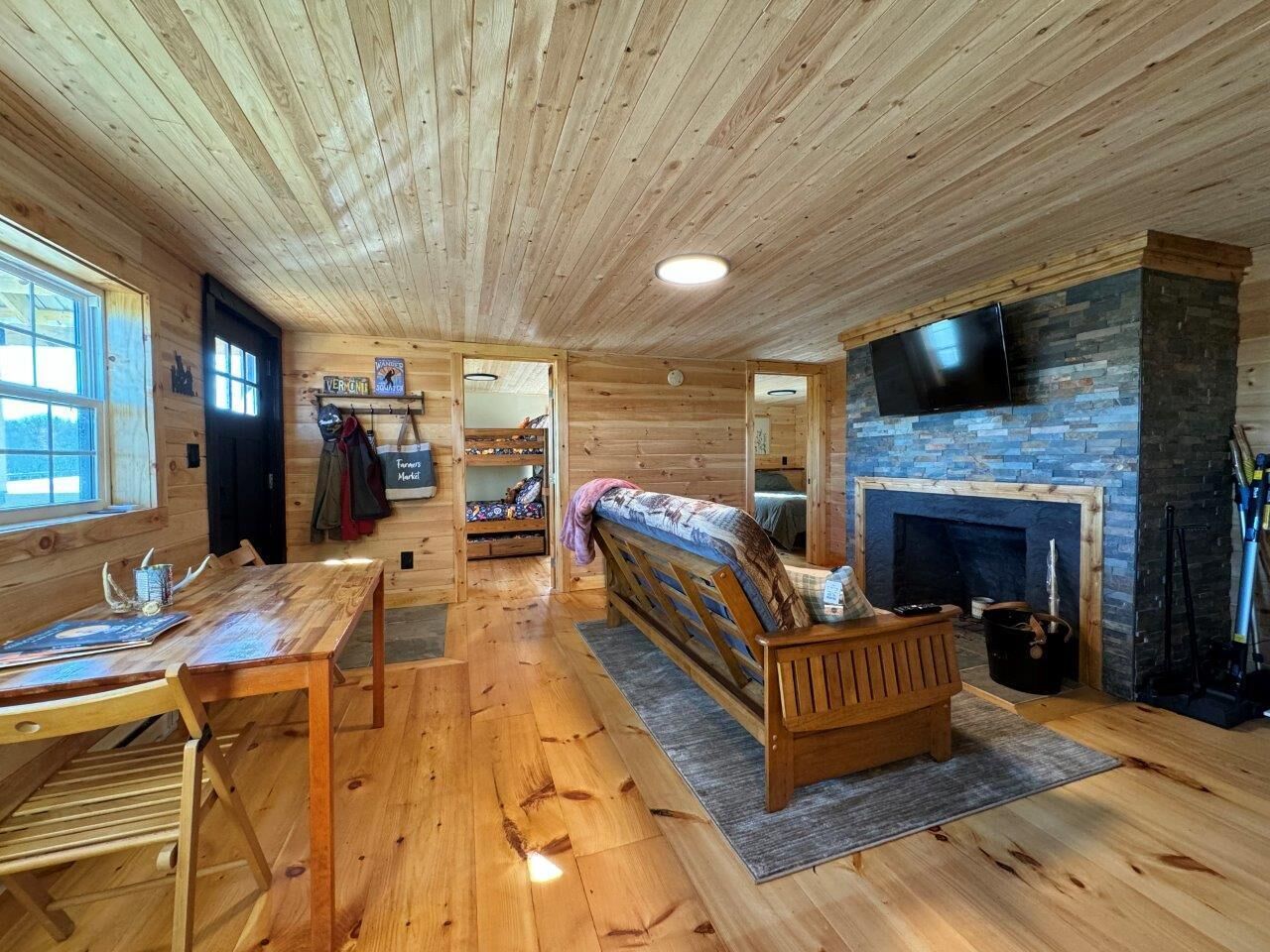 Renovated Ski-InandSki-Out Peru Condo at Bromley Mtn is located in Peru, just 31 miles from Bennington Museum and 15 miles from Emerald Lake State Park. The property is around 31 miles from Bennington Battle Monument, 7.6 miles from Mount Equinox, and 30 miles from Bennington College. Free Wifi is available throughout the property and Stratton Mountain is 11 miles away. The apartment consists of 3 bedrooms, a living room, a fully equipped kitchen with a dishwasher and a coffee machine, and 2 bathrooms with a bath and free toiletries. Towels and bed linen are available in the apartment. The accommodation has a fireplace. Ski-to-door access is available on-site and skiing can be enjoyed close to the apartment. Rutland State Airport is 32 miles from the property.