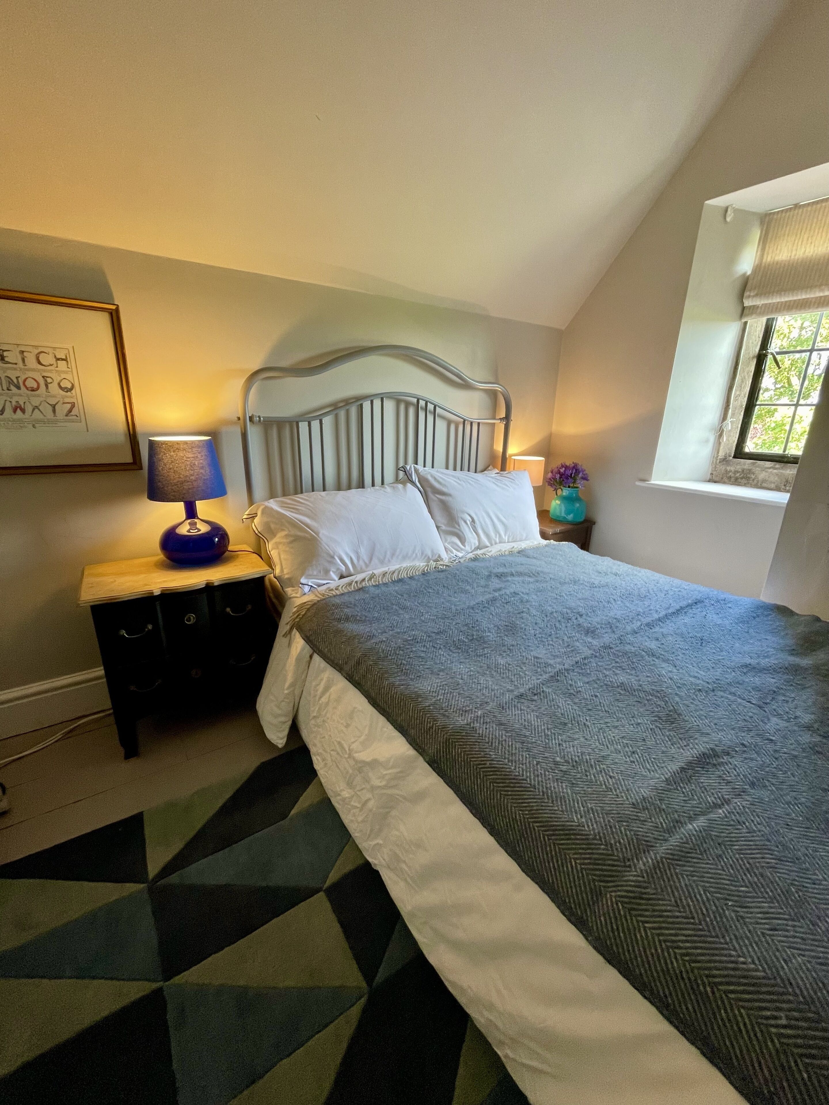 Stunning annexe offering a luxurious stay near Bruton. With its own entrance, this stylish space offers a great place to relax in comfort. Open the double doors, and you'll find a comfortable King-size bedroom with a pocket-sprung bed, Heal's bed linen and blackout blinds. To the side is a luxurious en-suite with a walk-in shower. Step through into the living area and there are two comfortable original Ercol armchairs with lovely views outside. There is also a smart kitchen area with fridge, sink and induction hob.