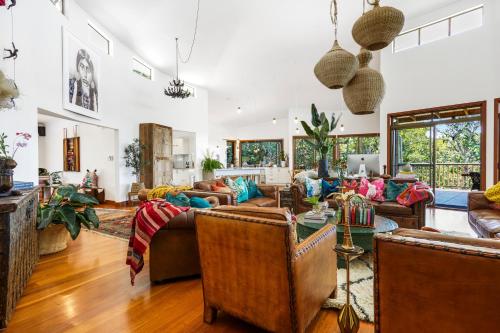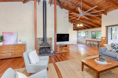 Make good your escape to this private luxury holiday home adjoining Buderim Forest Park, a tropical gully, where Martin's Creek cascades over a series of waterfalls and pools. Only 700m to Buderim CBD, full of yummy eateries and boutiques. Lovingly created to spoil you to bits. Wake to birdsong, wander down to Serenity Falls, morning coffee in the Byron Bay hanging chair, take up a book in the window seat and at the end of the day enjoy a relaxing magnesium bath under the stars.