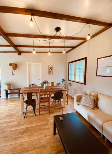 The house has a newly renovated kitchen, one attic bedroom, one sofa-bed, a spacious living room, and a fully equipped and sunny bathroom. The house also offers an indoor terrace with a heated lamp and two outdoor terraces where you can enjoy breakfast, a barbecue, or just relax with a glass of wine after a nice day at the beach. The outdoor garden terrace has a table for 6 and two chaise-loungers where you can relax, read a book, or listen to some music. The spacious fully-fenced garden is surrounded by old trees, fruit trees, and beautiful flowers and plants with plenty of space for dogs to run around.