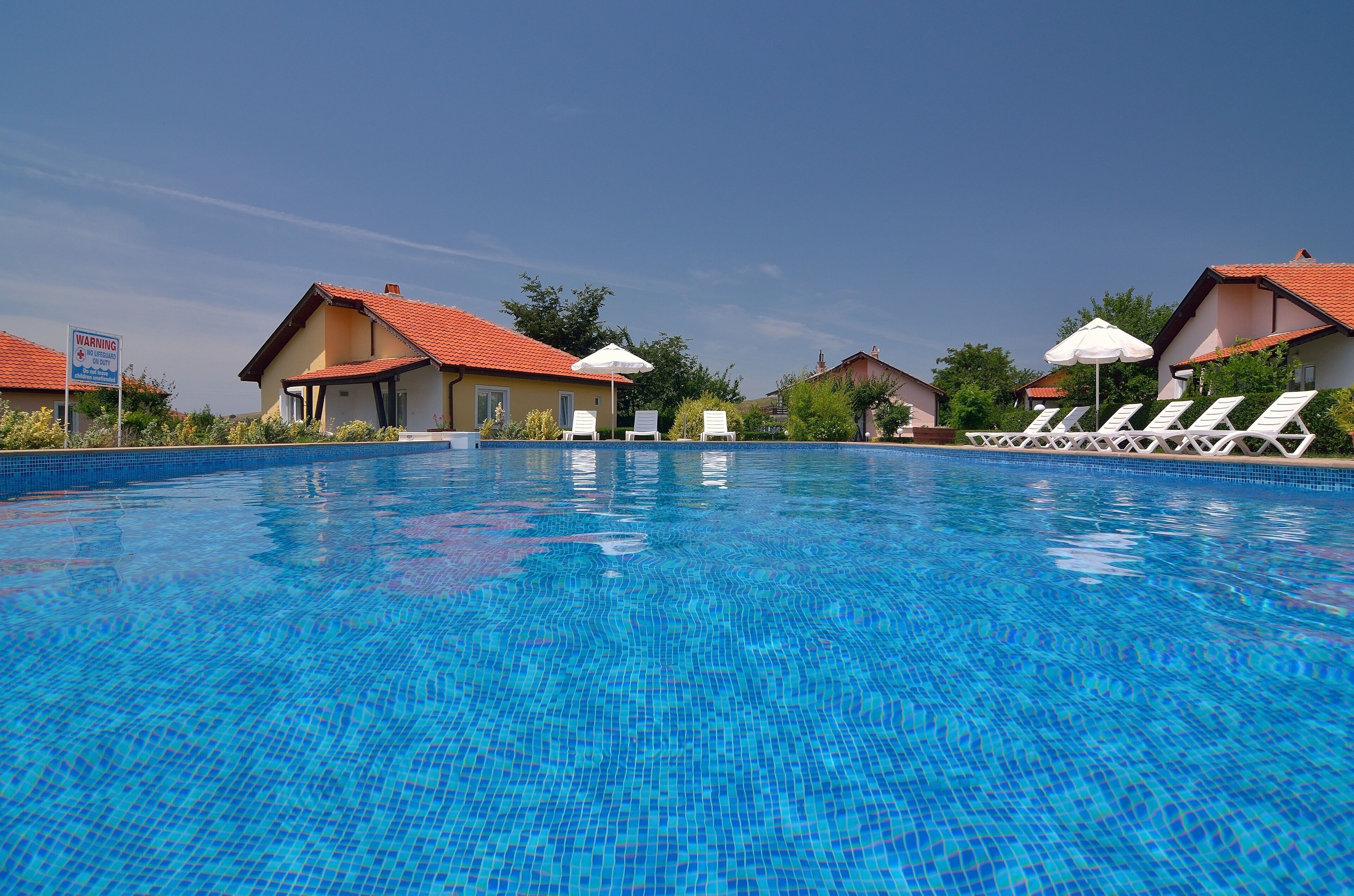 Two self-catered villas (3 bedroom each, total sleep 12) close to Sunny Beach from the owner. Fully equipped kitchen. Bed linen, towels & sun beds provided. Swimming pool , covered BBQ with dining area, kids playground.