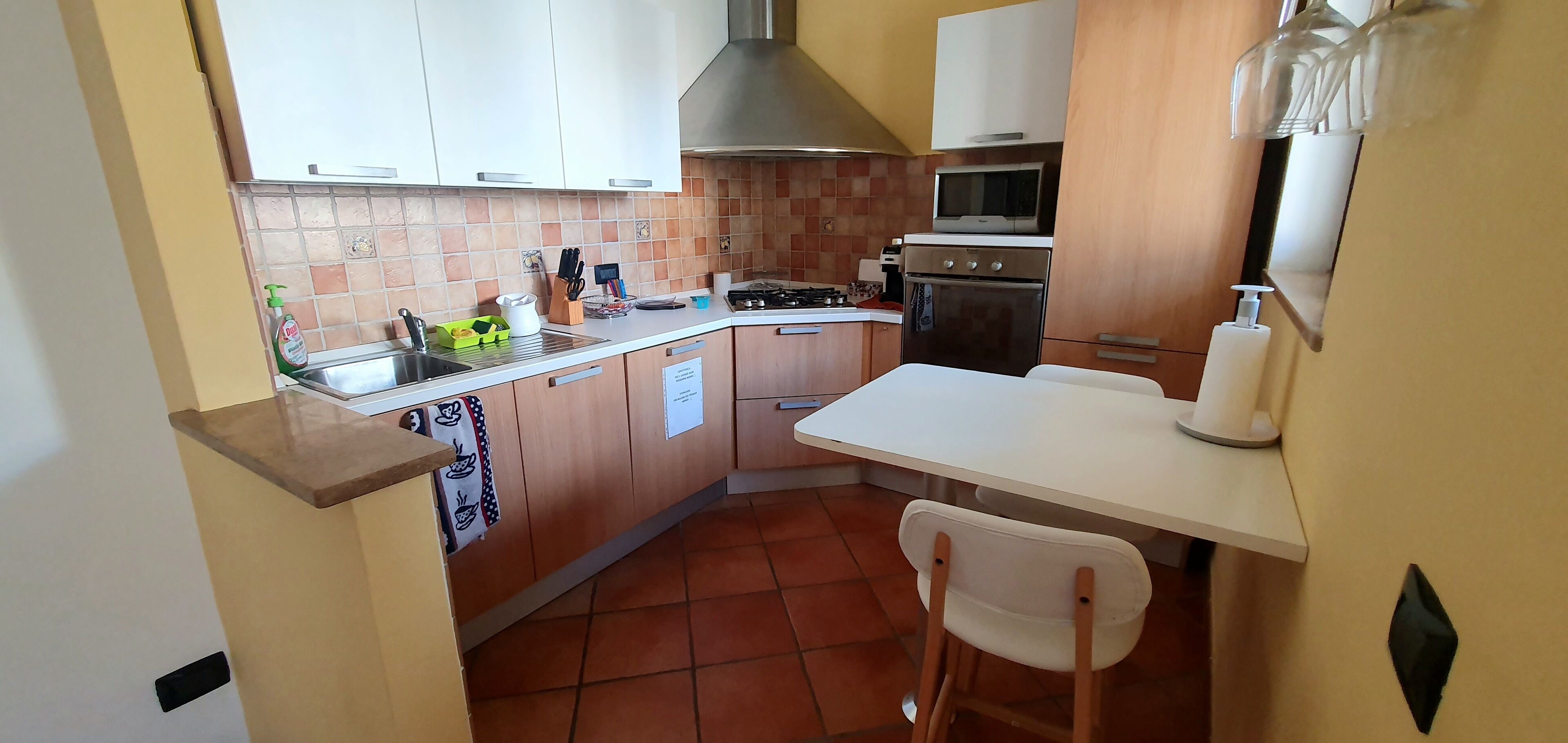 Bright and quiet 3-room apartment in the central area comfortably sleeps 4 people. Second floor with lift, consisting of entrance, open kitchen, living room with sofa and TV, bathroom with window, large double room, room / studio with double sofa bed, covered balcony overlooking the condo yard, private car box and motorbike Inside the condo. Energy class E - 140.90 Kwh / sqm a.