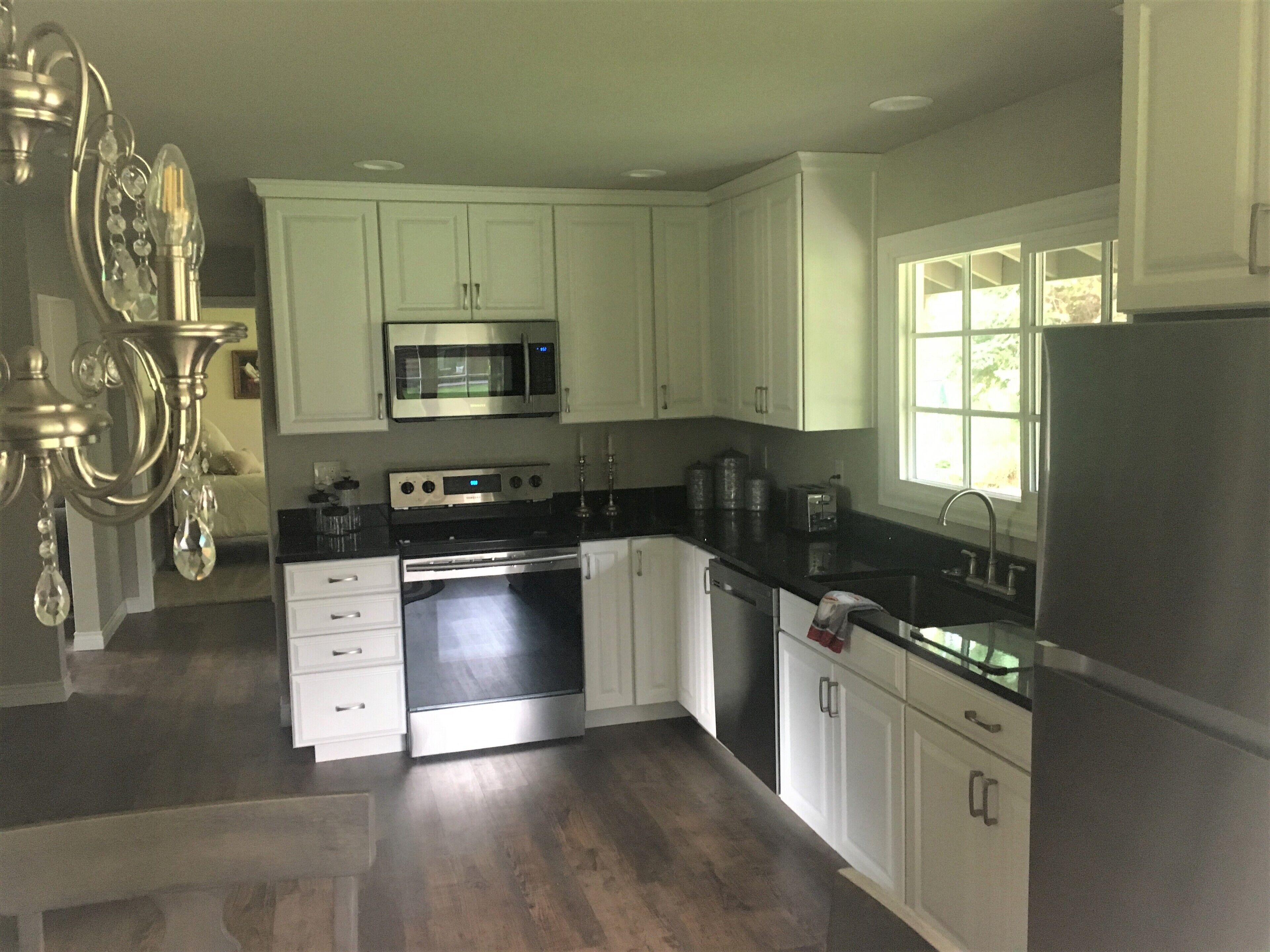 This home has a master bedroom and bath with queen bed, rear bedroom with brass full bed and if needed the sofa in living room is a pullout full queen bed also. The nightly rate is based on four person occupancy. There is an additional guest fee for each additional guest, total of six (two added guest) is the maximum. The cottage has recently been completely renovated through out so everything is new including flooring, doors, trim, kitchen and bath cabinets, quartz kitchen and cultured marble bath counters, all new appliances and fixtures etc.. Come take a load off and stay awhile.