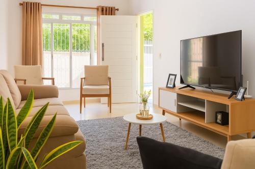 While you're here, you can enjoy all the comforts of home and more, including free WiFi and a Smart TV, as well as an outdoor entertainment area and a garden. Other amenities include towels, a picnic area, soap, and toilet paper.