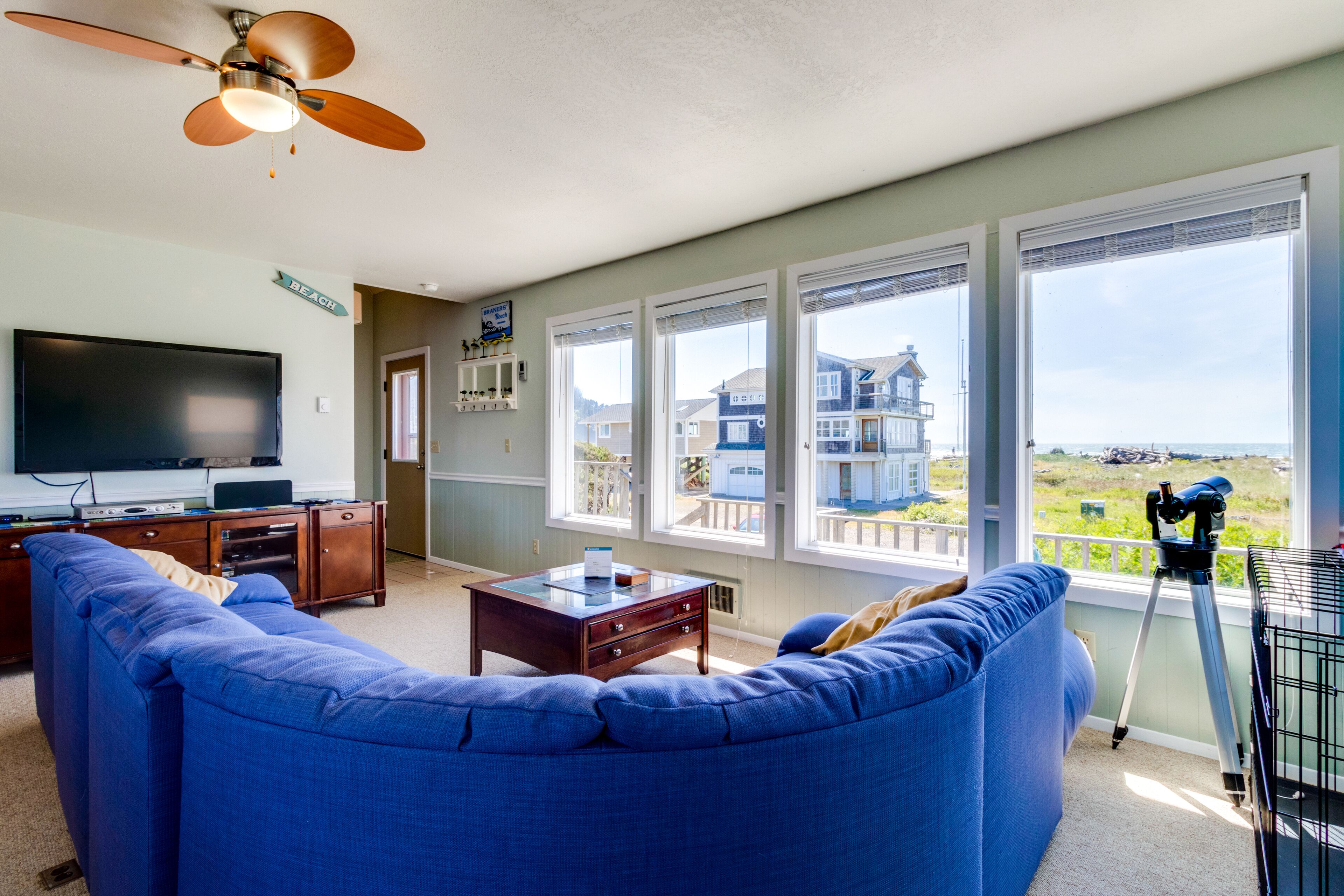 Wake up each morning to Pacific Ocean blue at this delightful Cape Meares home, an all-seasons escape on the Northern Oregon Coast with a deck and living space that overlook the water, a firepit and a gas grill for barbecues, and easy walking access to the beach just four blocks away!