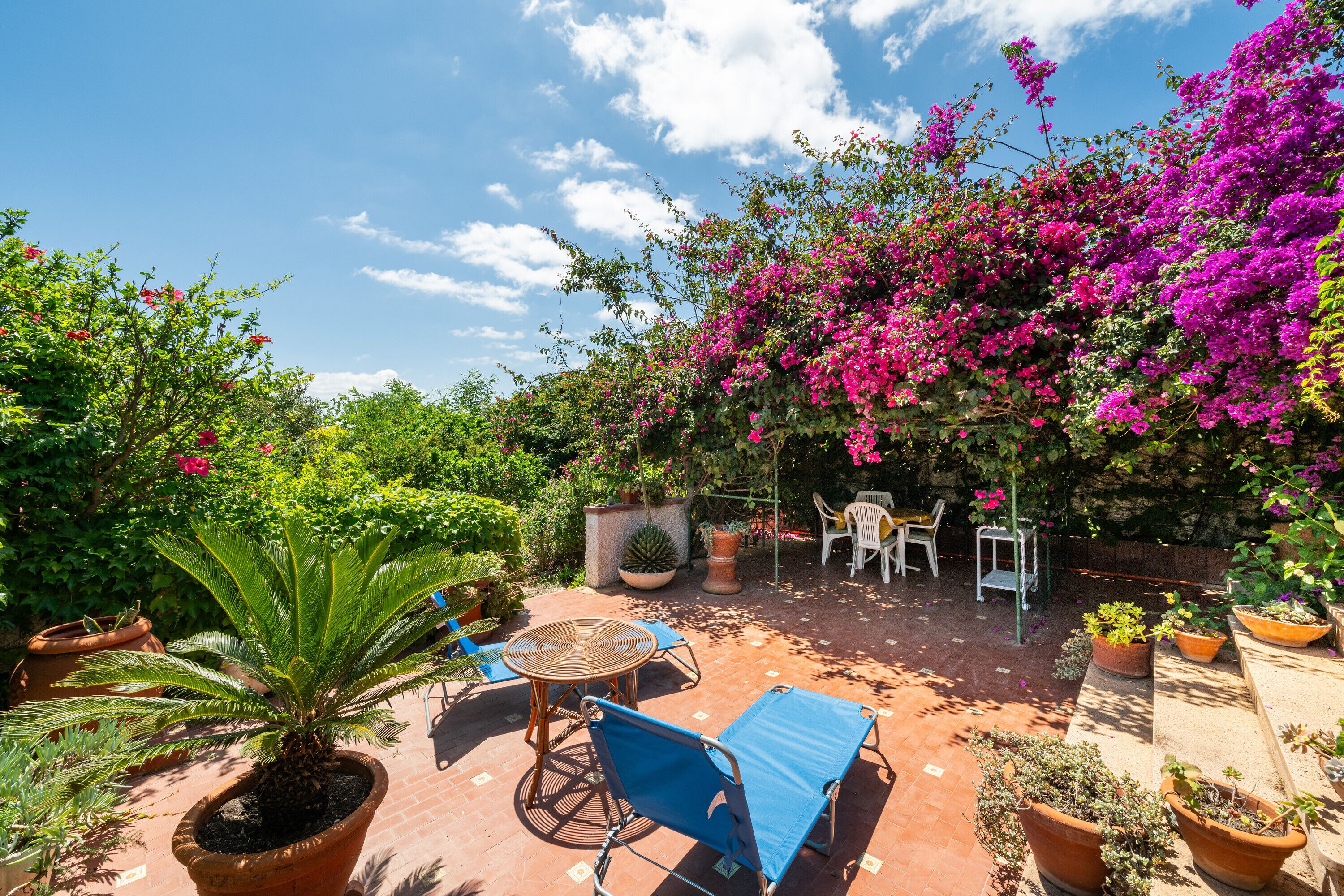 House with 2500 m2 surrounding land with palm trees, oleander, myrtle, bougainvillea, pine, juniper, maquis, agaves. The property is located about 3 km north of the port, from which you come up with a comfortable and scenic town road. From the large terrace sea side of the house enjoying a panoramic sea views stretching from the harbor to the island of the country flat and the northern tip of the island. The property, completely fenced with exclusive access, away from the sea as the crow flies about 150 m. The closest beach is that of Cantagallina, both easily reachable on foot in 5 minutes. The property includes exclusive access through a gate adjacent to a wide municipal road, a cemented square for convenient maneuvering access with a car and a pergola supported by 6 strong columns of stone useful for the shelter from the sun and water of 2 cars .