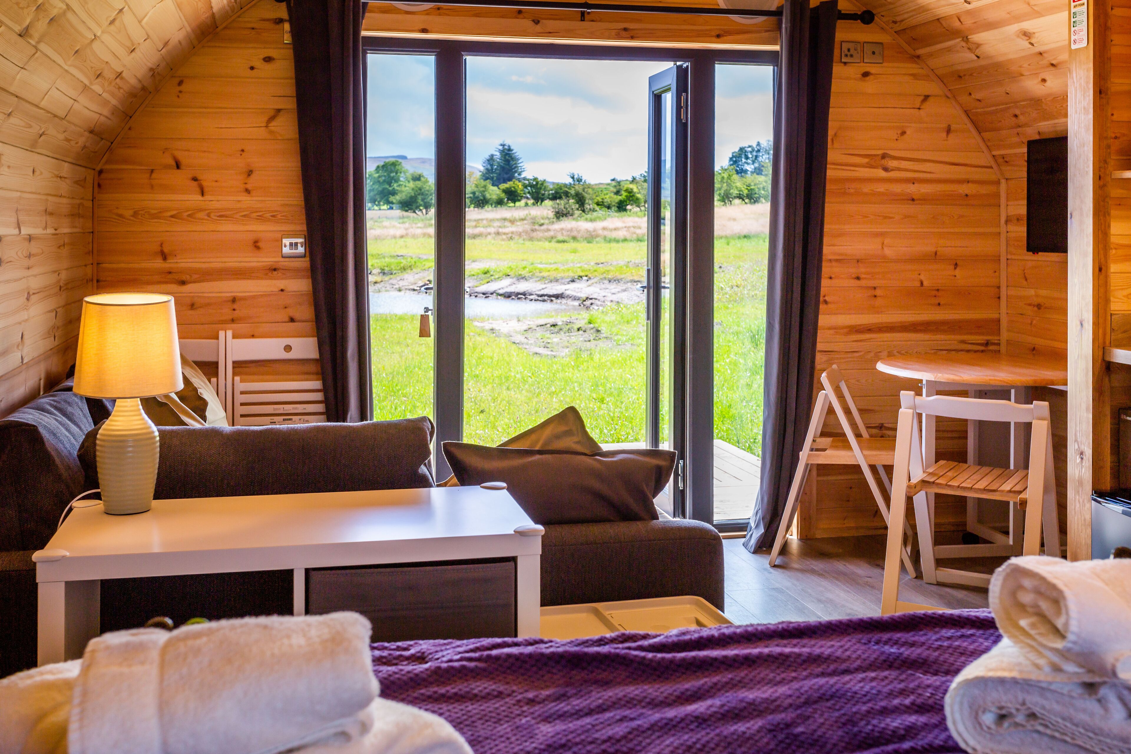 Providing a garden, Kintyre Glamping Pods features accommodations in Campbeltown. This property offers access to a balcony, free private parking, and free Wifi. The campground provides garden views and an outdoor fireplace. The campground provides guests with a terrace, sea views, a seating area, a flat-screen TV, a fully equipped kitchen with an oven and a microwave, and a private bathroom with walk-in shower and free toiletries. A patio with an outdoor dining area and lake views is offered in each unit. At the campground, all units have bed linen and towels. The campground has a picnic area where you can spend the day outdoors. Springbank Whisky Distillery is 11 miles from Kintyre Glamping Pods, while Mitchell's Glengyle distillery is 11 miles away. Campbeltown Airport is 14 miles from the property.