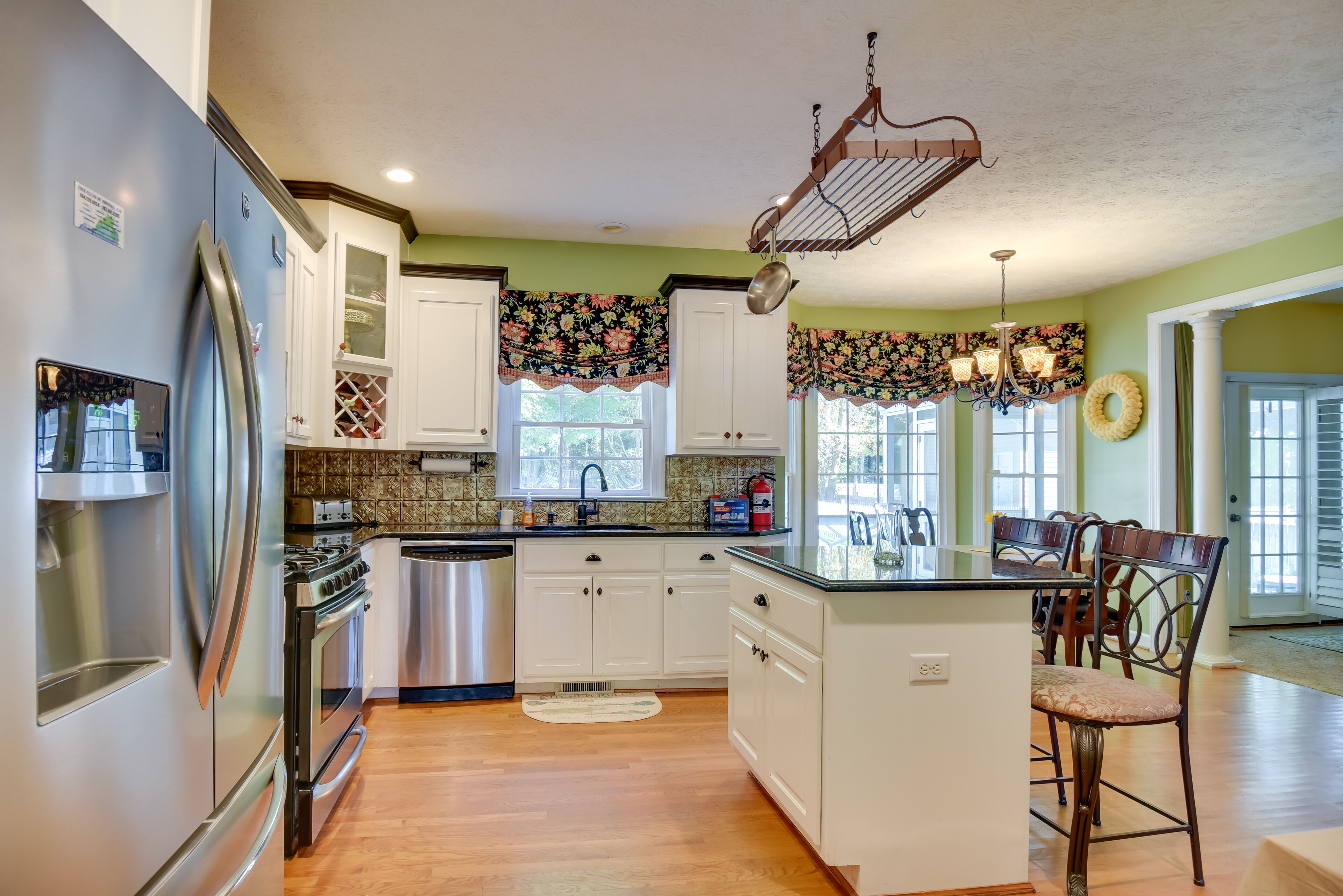 INDOOR LIVING: 3 Smart TVs, 2 dining tables, breakfast bar, office w/ laptop workspace, jetted tub