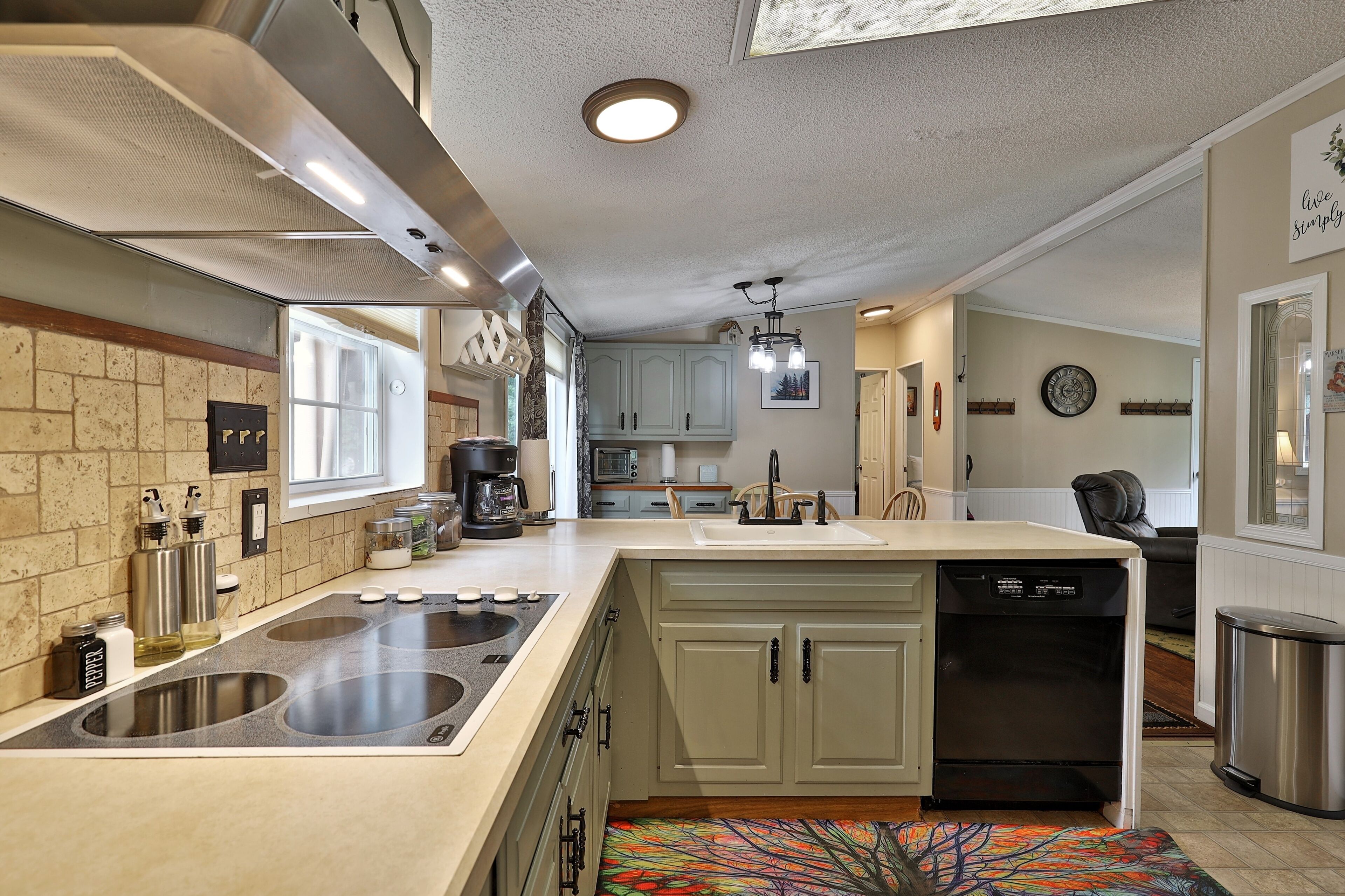 Once you've had your fill of the local attractions, return to your humble cabin home and walk past the beautiful front porch and in through the front door. You'll be immediately greeted with open arms by the splendid interior decor, homey knick-knacks laid all about the inside, and comfortable furnishings. Whip up your favorite meal in the well-equipped kitchen, then head out to the private deck or gather around the fire pit as the sun sets—perfect for roasting marshmallows and sharing stories under the stars. Light the wood stove and fend off the cold with a nice cup of hot cocoa around nighttime, or break out the board games and beers for an unforgettable evening. This home is heated and has partial air-conditioning, perfect for year-round visits.