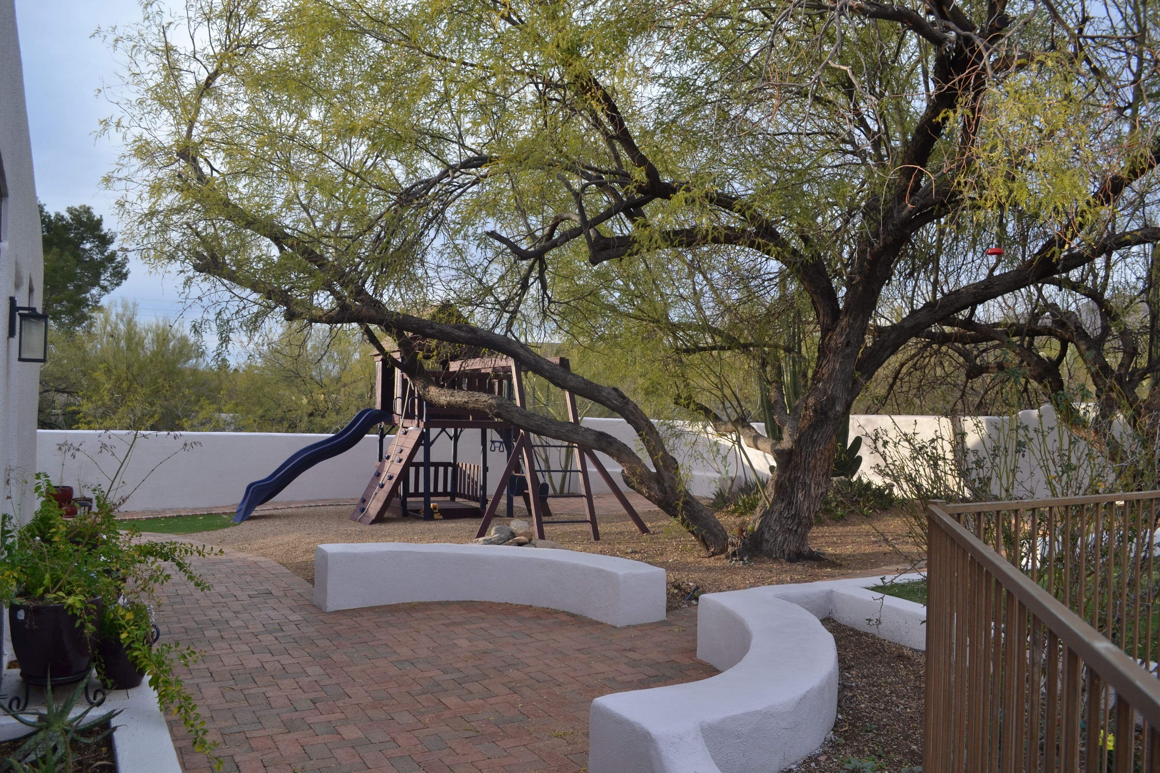 Kids will love the playground with a treehouse, slide, swings, and more. Nature enthusiasts can watch finches, cardinals, and hawks, or listen to distant coyotes at dusk.