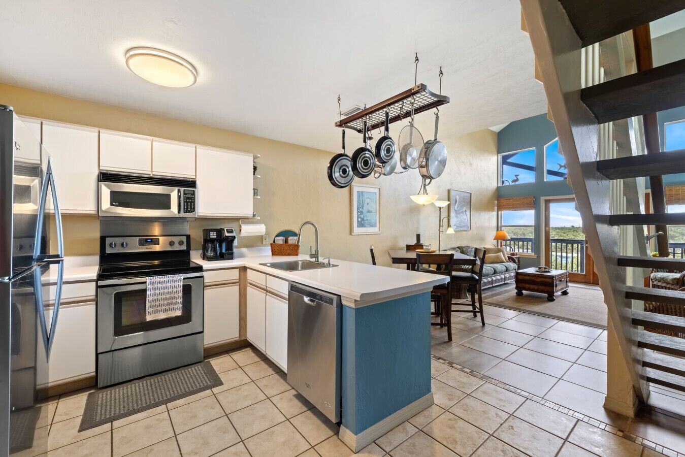 Fullly stocked kitchen with dishwasher, plenty storage & bar seating for 3