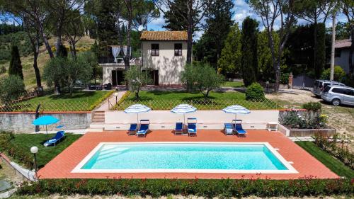 The structure, consisting of a main house, an attached house, and a private swimming pool immersed in nature, is located on a hill in a dominating position. It is surrounded 360° by a park of one hectare decorated with cypress trees, fruit trees, olives, and vines. It is located a few kilometres away from Certaldo. This is a privileged location for those who desire relaxing and calm holidays and want to visit the most beautiful city of art in Tuscany.