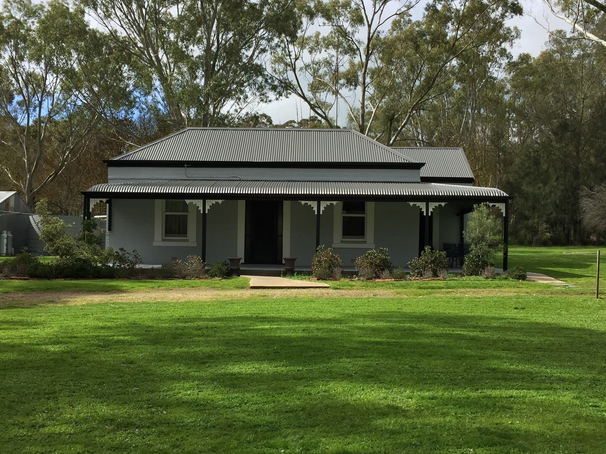 Situated on 35 ha of rolling hills, the heritage-style cottage enjoys stunning, unimpeded views of hundred-year-old gum trees.
