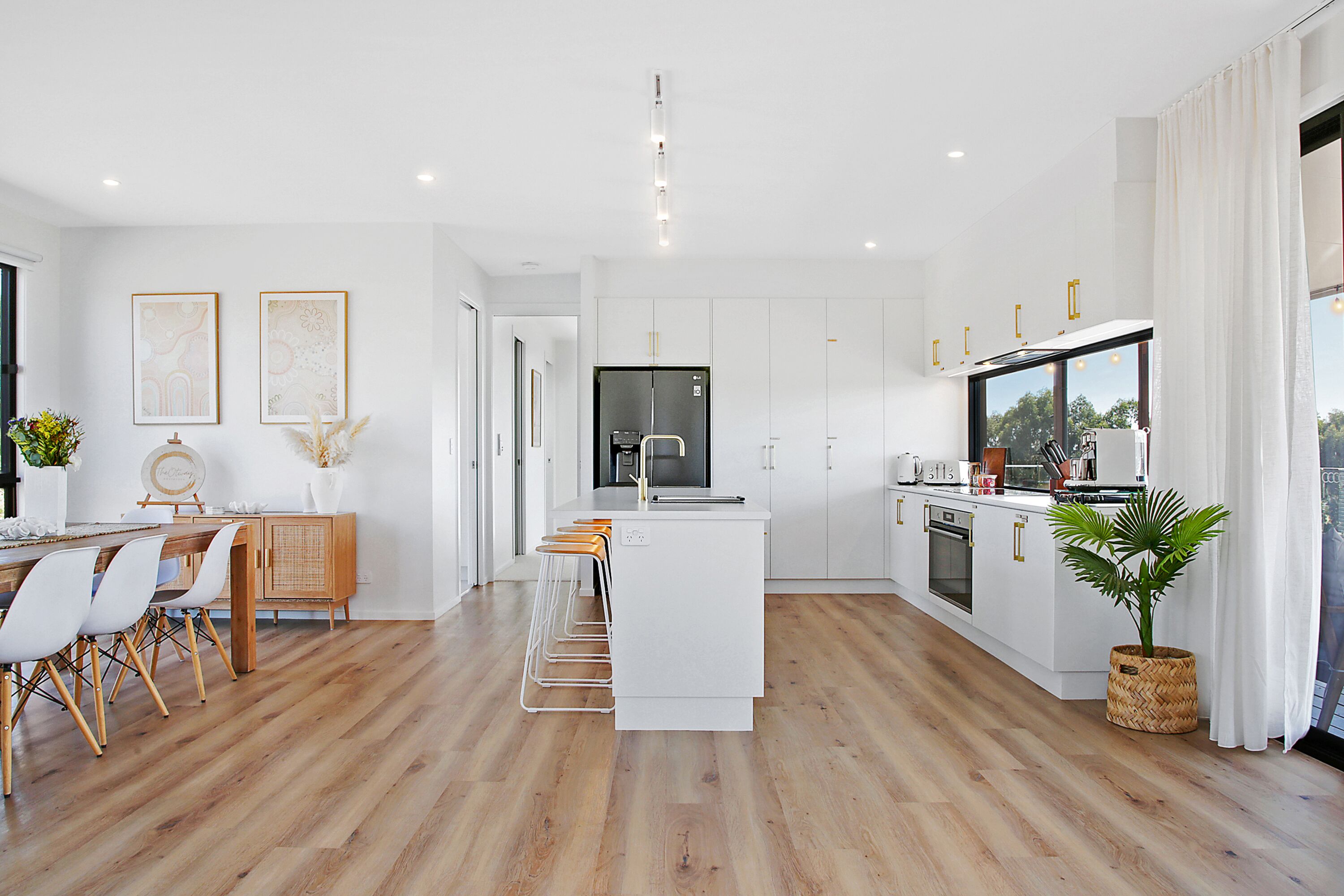 Fully equipped kitchen includes a gas cooktop, oven, dishwasher, microwave oven and coffee Machine. Quality utensils and crockery are included – perfect for home entertaining. Full laundry with washer and dryer.