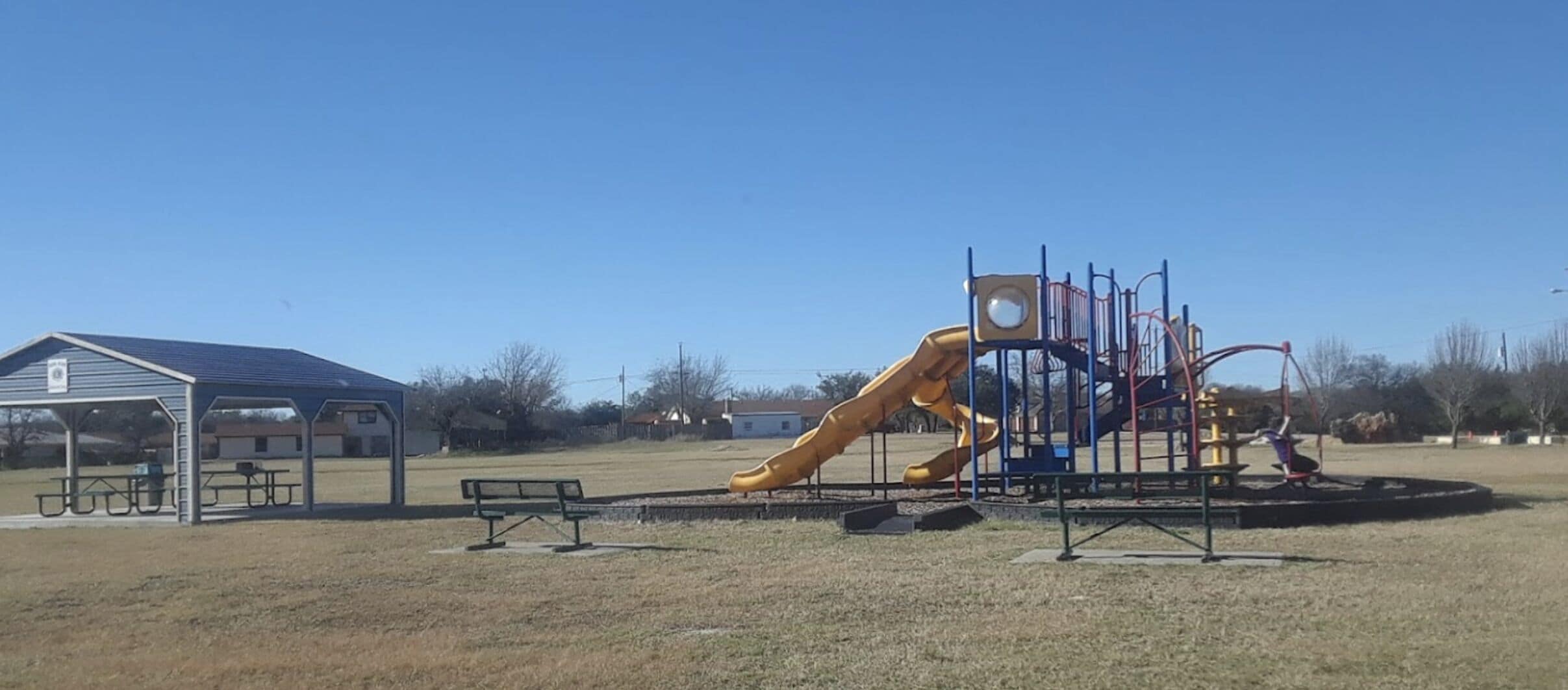 Fully stocked 2 bedroom, 1 bath 1100 sq ft duplex with fenced backyard on 17.3 acre security fenced and gated community, fire pit, picnic tables, board games, Jenga, horseshoe pits, paved roads, park like setting along 1100 linear feet of creek and Hill Country Views, mature trees, pets accepted, community garden, Chicken coop full of hens for fresh eggs daily(until supply runs out). This unit is located in front of the drive in movie screen at Joy RV Resort. More amenities coming soon; inground pool, clubhouse, laundry center, restroom and shower house, outdoor pergola and more.