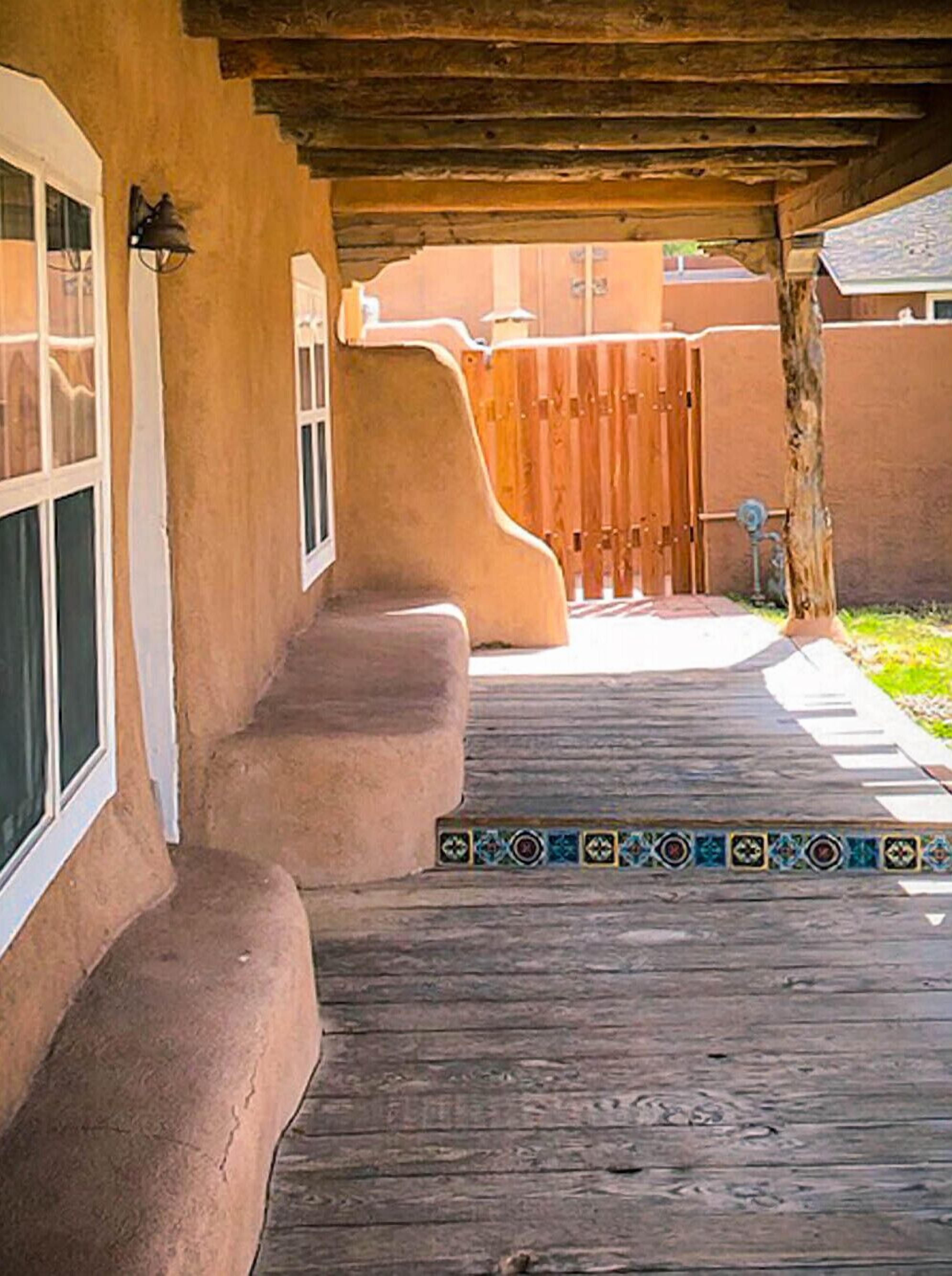 Traditional southwestern adobe home with brick floors and vigas. 3500 sq ft. Very organic and homey, with recent major renovation and upgrades including new master bath, new HVAC, piano room, zen garden, etc. Art from around the world from when we were U.S. Diplomats. Amazing gardens, grass and great outdoor space. 1 minute walk to nature preserve along the Rio Grande River with cottonwood forest. We have 25 or so mature cottonwood trees on our property creating a park-like atmosphere.