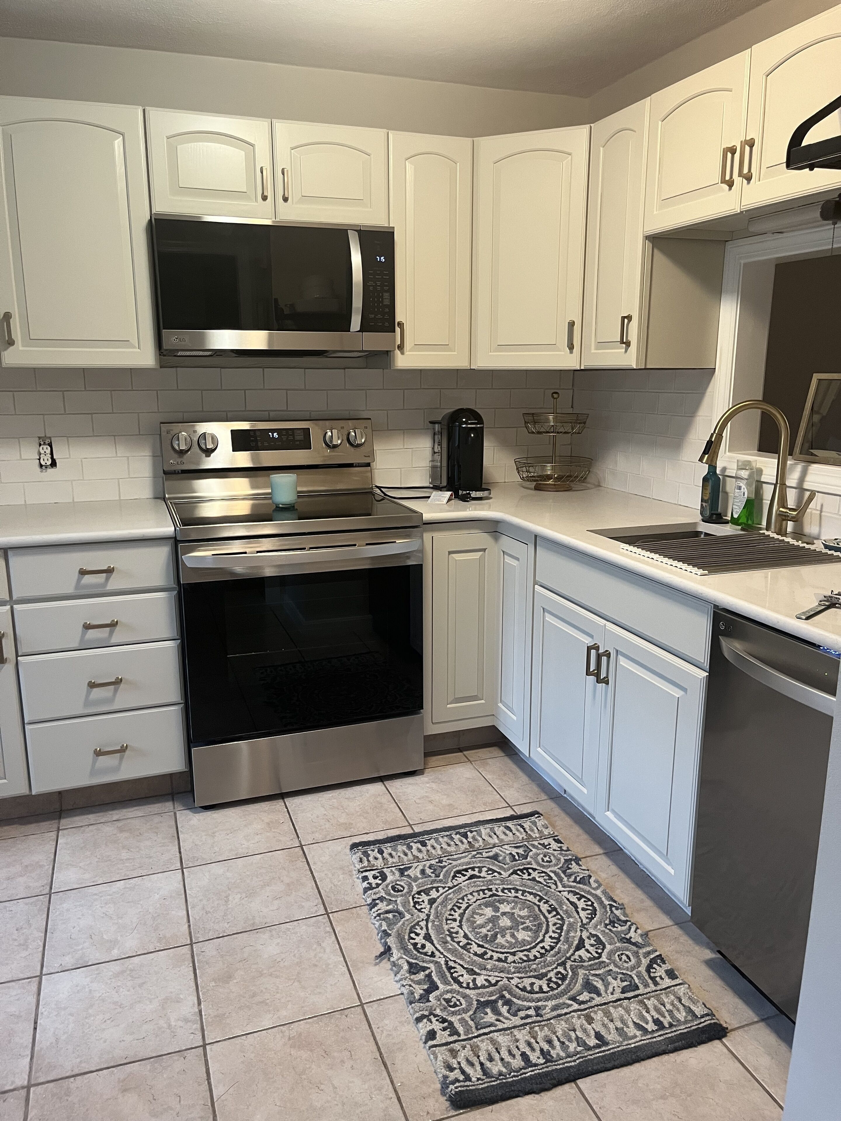 - Refrigerator, stove/oven, microwave