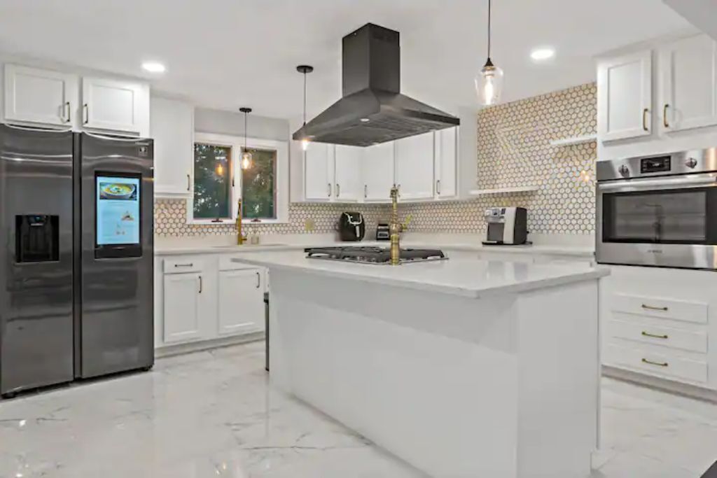 This spacious family-friendly home in a quiet East Greenwich neighborhood has tons of room for everyone to gather! It is newly renovated with 3-stories and various large living spaces, an open concept kitchen, and a private master with an en-suite bathroom on the main floor. The home can sleep up to 10 people. The location of is central to everything in Rhode Island: 20 minutes from Providence, 25 minutes from Newport and Narragansett, and 45 minutes to Westerly. No pets allowed.