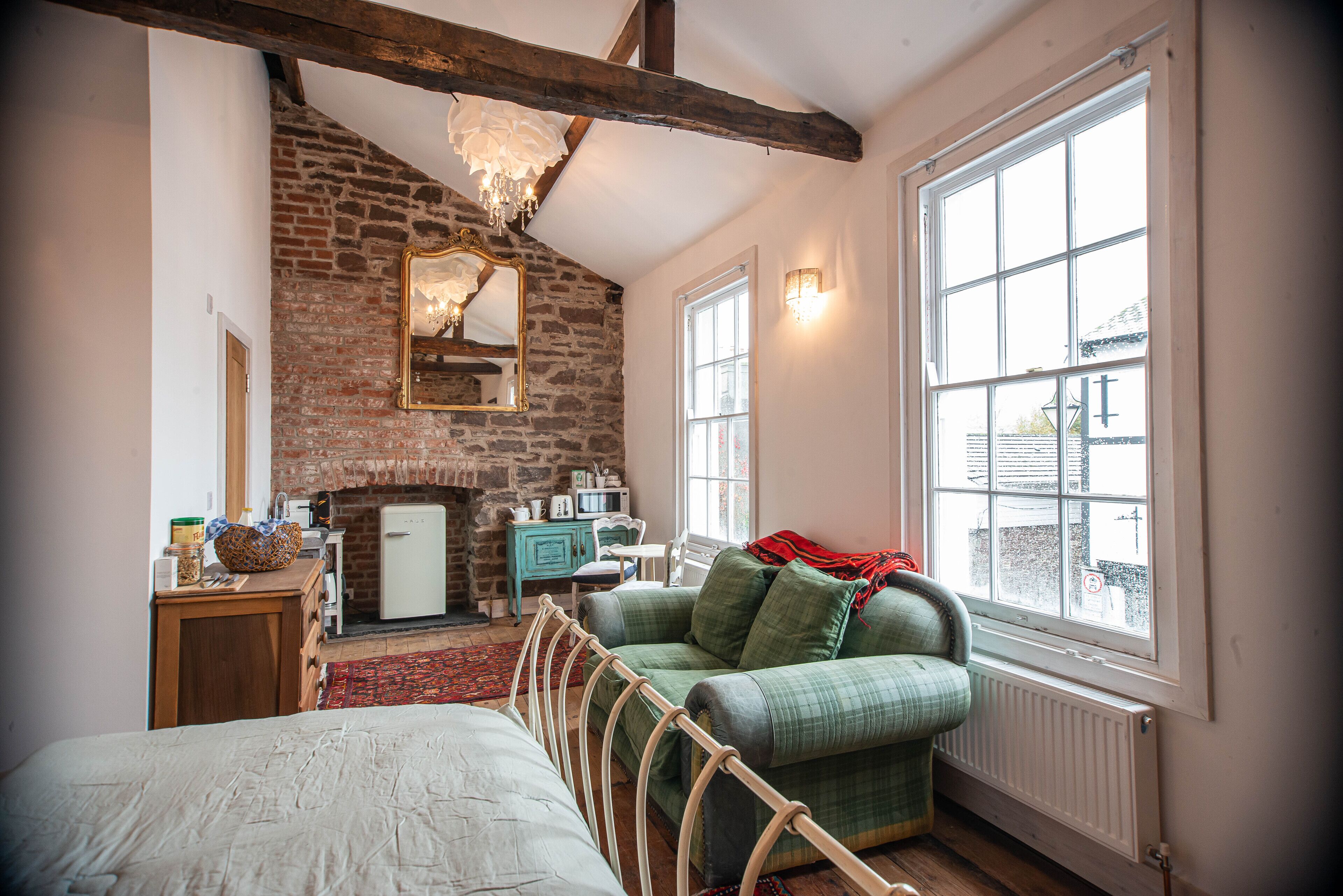 The spacious bathroom is luxuriously finished, with local toiletries for you to use. As you bathe, enjoy the serene views of the ancient St Catwg’s church.