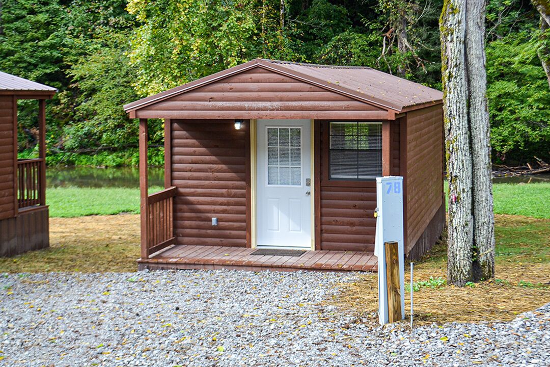These Cabins are creek front and located in the beautiful East Tennessee area at River Forge RV Park and Campground. The cabins are 1 room with 2 full size beds. Cabins are climate controlled with heating and air. The bathhouse is located right behind the cabins, and they include a separate men's and women's shower, bathroom, and vanities. (THERE ARE NO BATHROOMS IN THE CABINS) The laundry mat is also located in the bathhouses facing the cabins. The cabins have a dorm refrigerator and microwave. Also available on the property is a playground, community firepit, and pavilions. Come to our country market located at the entrance of the property for all your basic commissary needs. In addition, we serve breakfast and lunch at the country market!!! Enjoy a scenic hike along the creek or simply relax on your own private back porch.