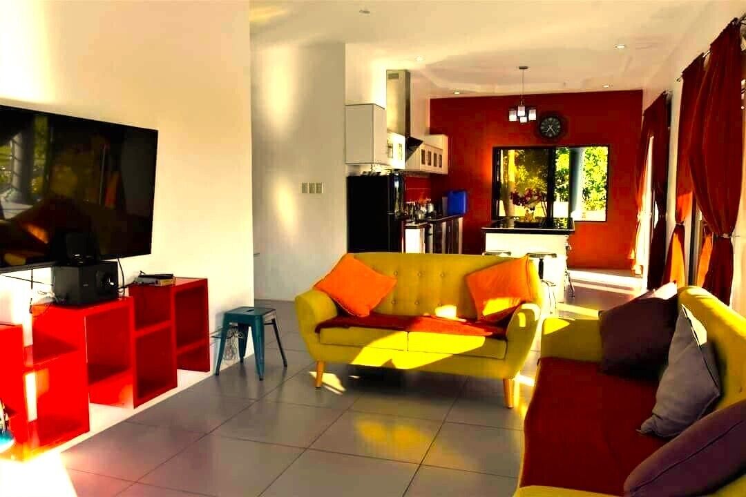 Offering a garden, Dauin-unique home away from the hustle and bustle. Offers accommodations in Dauin. Both free Wifi and parking on-site are available at the apartment free of charge. Guests can have a drink at the bar. Providing a terrace and sea views, the apartment includes 2 bedrooms, a living room, satellite flat-screen TV, an equipped kitchen, and 1 bathroom with a shower. Guests can take in the views of the garden from the patio, which also has outdoor furniture. The apartment offers bed linen, towels, and daily room service. Guests can eat at the on-site family-friendly restaurant, which is open for dinner, lunch, brunch, and cocktails. In addition to a year-round outdoor pool, Dauin-unique home away from the hustle and bustle. Also provides outdoor play equipment. Robinsons Place Dumaguete is 11 miles from the accommodation, while Dumaguete Belfry is 12 miles from the property. Sibulan Airport is 14 miles away, and the property offers a paid airport shuttle service.