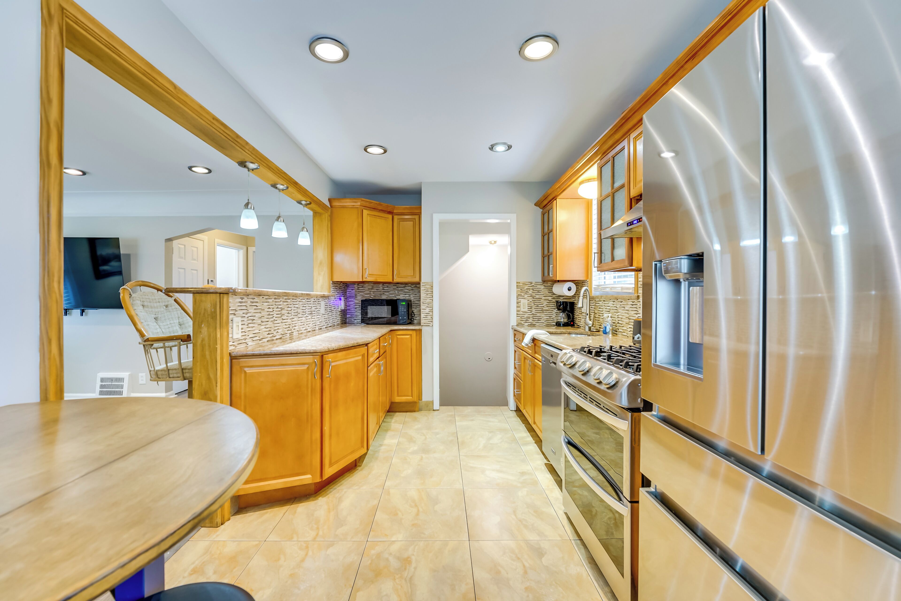 - "The house was okay. One thing it could use is a full size mirror. Did have shampoo which was nice. Not all the games in the garage worked. The garage could have been cleaned before our arrival lots of spider webs. The TV didn’t work but the host helped with that problem. Thanks!" - "OVERALL - Property was clean and had pretty much all you needed for a few people to stay and have some fun playing games and so on. MORE DEEETS - Reservation started a bit funky as the owner had the home double booked. Ended up just pushing my res back 1 day to make it easy on everyone. Once the property was cleaned got my door code, so check in was easy. Property was nicely cleaned, minus a cup of ice in the garbage. But hey its SUMMER! Right? So starting outside... Yard was nice, garage is filled with games like air hockey. My 11 year old son and 14 year old daughter had fun playing that, basketball, and arcade games. Basement has laundry machines but other than a couch (Donnie, add some stuff down there. Make the space usable). Kitchen was nice, with a big fridge, cups and plates, and they even left ice in the freezer! Nice touch! Dining room has a table for 4 if I recall. Living room was relaxing, with a nice Sony smart TV (one in garage as well) and roller ottomans under the coffee table. As far as the house features go it is suited to having some friends or kids hang and play in the garage. Being the weekend of the 4th we got a bit of a break on the noise factor but you can shut the garage doors and it was pretty good at keeping noise out. I saw a heater on the ceiling. There was also a dry bar, fridge, and a microwave. Sleeping was pretty straightforward, with a comfy Queen in the main, 2 singles that were adequate, and couches that my son slept on and said were comfy. Beds all appeared clean and despite the rooms being a bit on the basic side they were fine and I slept well! OVERALL - cool property. Nicely cleaned. A bit pricey but not terribly so, and on par relative to the area. The gaming aspect is cool and for a group of buddies or a family it would be a feature that might make renting here worth it on that alone. Donnie was decently communicative. Tons to do in the area as well for those who might be using it more as a hub to go downtown or to Ann Arbor, etc."