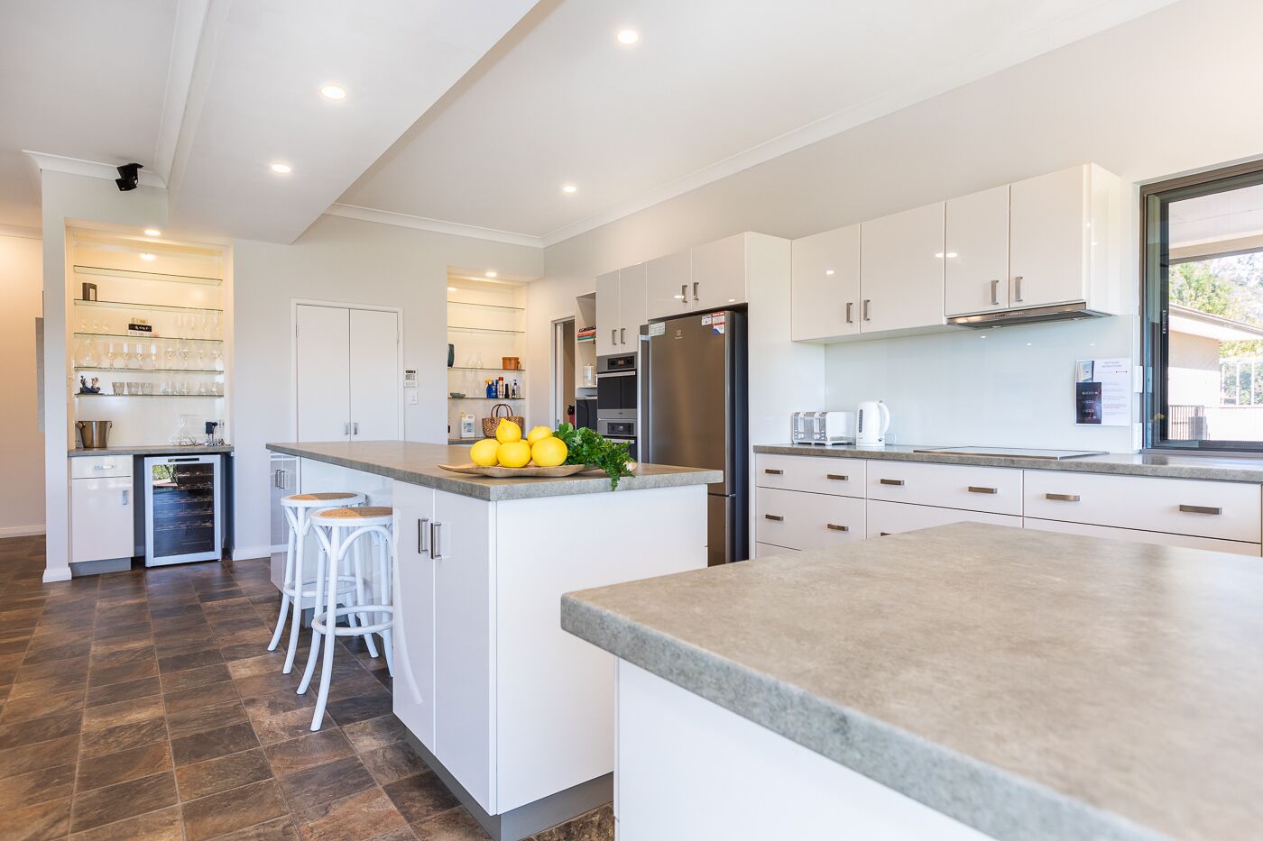 Our bar area has been reconfigured into cute kitchenette featuring a microwave, kettle, toaster. The dining area has views over the vineyard with the lounge area featuring leather lounge suites for your comfort, TV, DVD central heating / cooling and all the general condiments you require for tea and coffee, and many more little efforts to make this a holiday experience unforgettable!