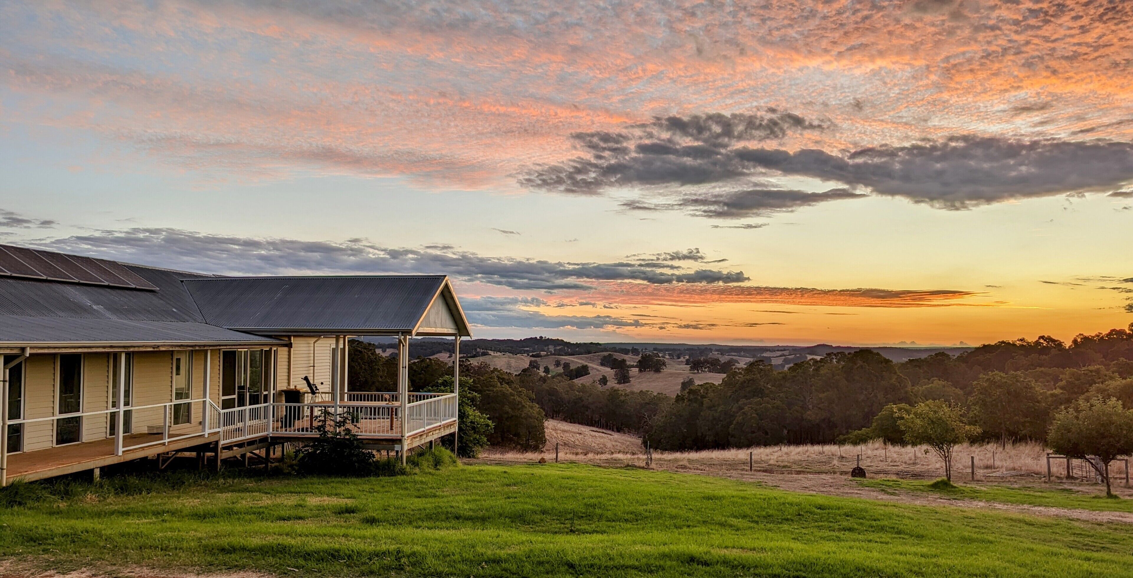 Escape to our secluded holiday house in the hill country of Donnybrook, with stunning sunset views. Your stay is completely ecotourist friendly, we are fully off grid, with solar/battery power, rainwater and we plant trees to carbon offset your trip to the property!