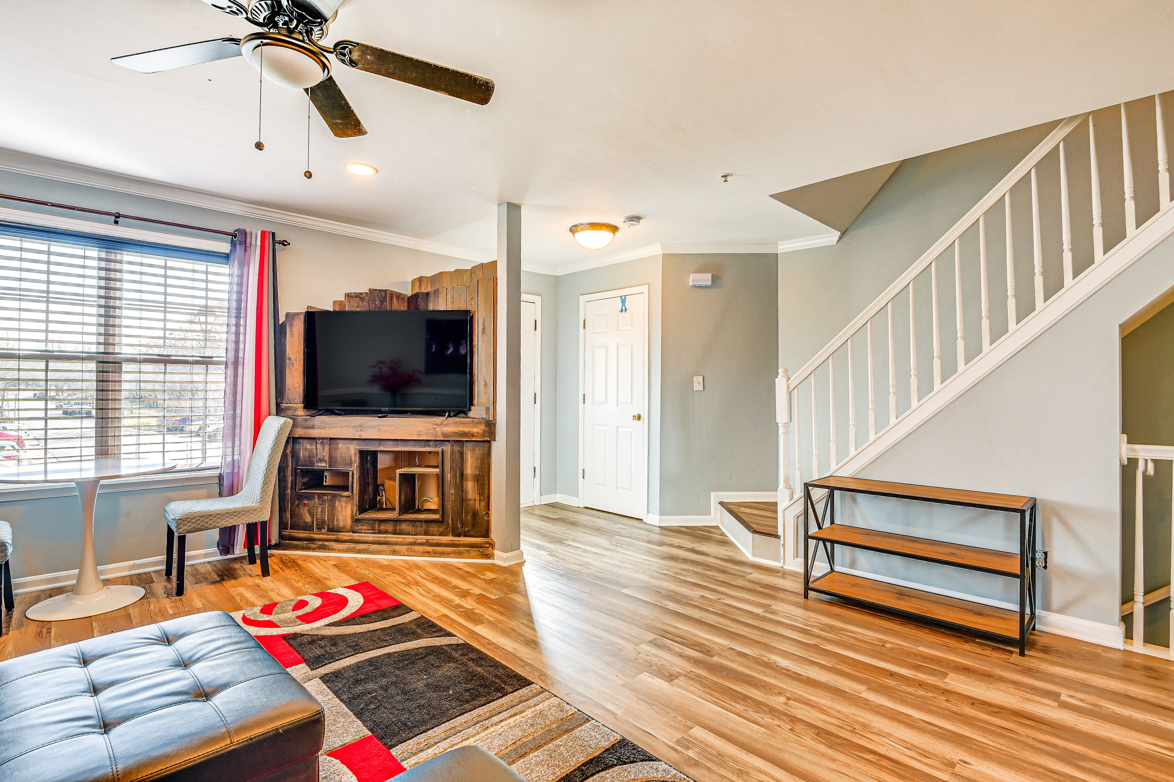 Come experience the peace and tranquility this townhome has to offer. Ideal for guests seeking a comfortable stay away from home. Features a private, dedicated office space, perfect for modern professionals. Prepare meals with ease in the fully equipped kitchen which boasts plenty of counter space. Enjoy movie nights on a large flat-screen TV. Experience the fresh, morning air on backyard deck while relaxing with a cup of tea or fire up something tasty on the grill in the evening.