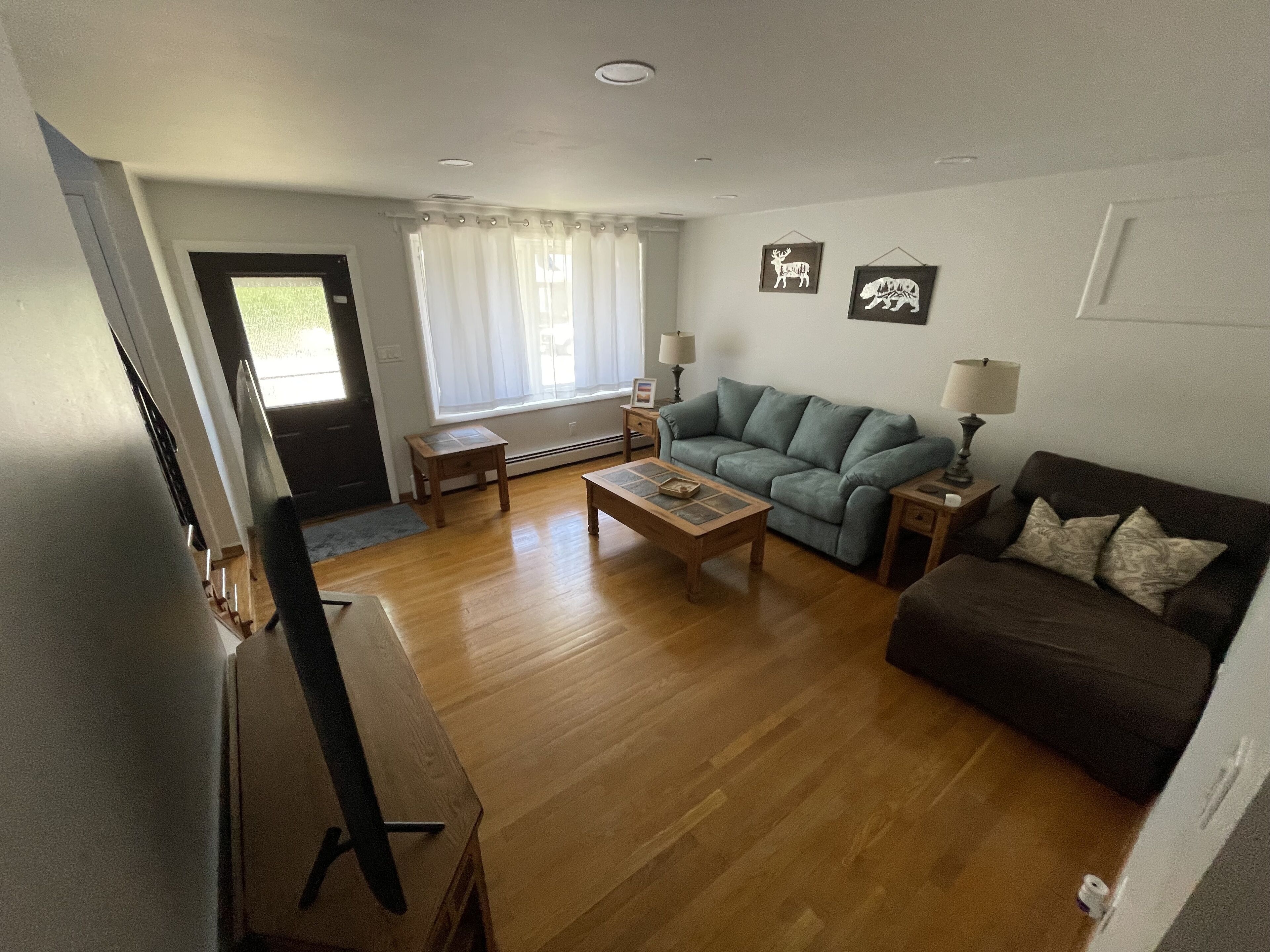 This place is great for a family or two with kids that are pre-teen and teenagers up to 8 guests. The first floor has two bedrooms, two bathrooms, a laundry room closet and open concept kitchen, dining area and living room with views of the waterfront. The master bedroom has a king-sized bed, ensuite bathroom with a soaker tub and separate shower, and 65” Smart TV with streaming service access. The second bedroom has a queen-sized bed, a 55” Smart TV with streaming service access, and a full bathroom adjacent in the hallway. The living room has a massive 65” Smart TV with streaming access with free SlingTV and the ability to log into your own streaming service accounts. There is no local cable access. The kitchen is fully equipped for preparing meals, and there’s a gas grill for cookouts.
