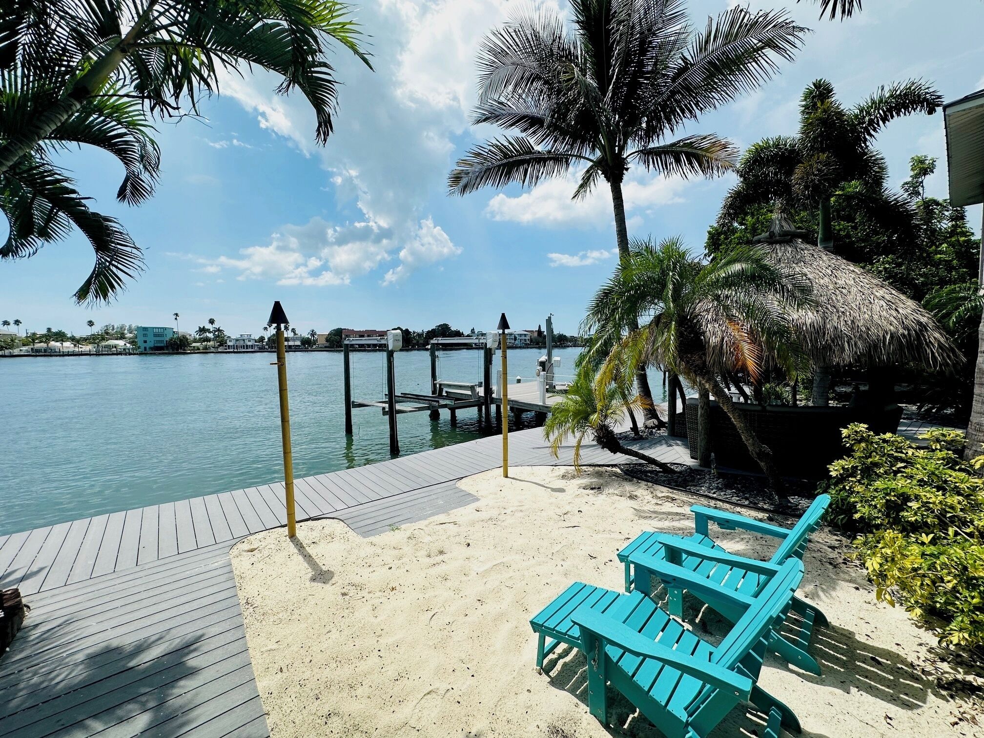 Nestled on the serene shores of St. Pete Beach, this exquisite waterfront property offers breathtaking views of the intercoastal, Sunset Beach, and Treasure Island. Imagine unwinding on your private balcony, as the sky ignites with the warm hues of a Florida sunset. With direct water access, this home features a boat dock, a boat lift, and a jet ski lift, making it a paradise for water enthusiasts.
