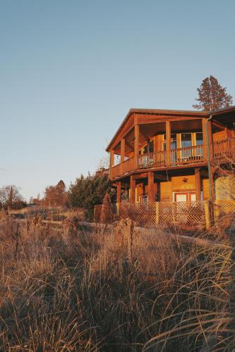 The tranquility and delights of nature in luxury accommodations. Experience a night of unparalleled star gazing, wake up to the soft hues of sunrise streaming through the cabin windows, find yourself immersed in spectacular surroundings. Wildlife everywhere: a herd of 90 elk frequent our fields, lots of deer, bunnies, turkey, quail and so much more--we cannot guarantee anything, but there are bald eagle sightings about once a week! Lake so full of bass—fishing may be too easy. A photographer, hiker, rock hunter, astronomer, and dog walker’s delight, with all the comforts of a home away from home in a very comfortable and luxurious 2-bedroom log cabin. There is a nice patio outside--if you smoke, please do so there. Plenitiful and convenient parking,