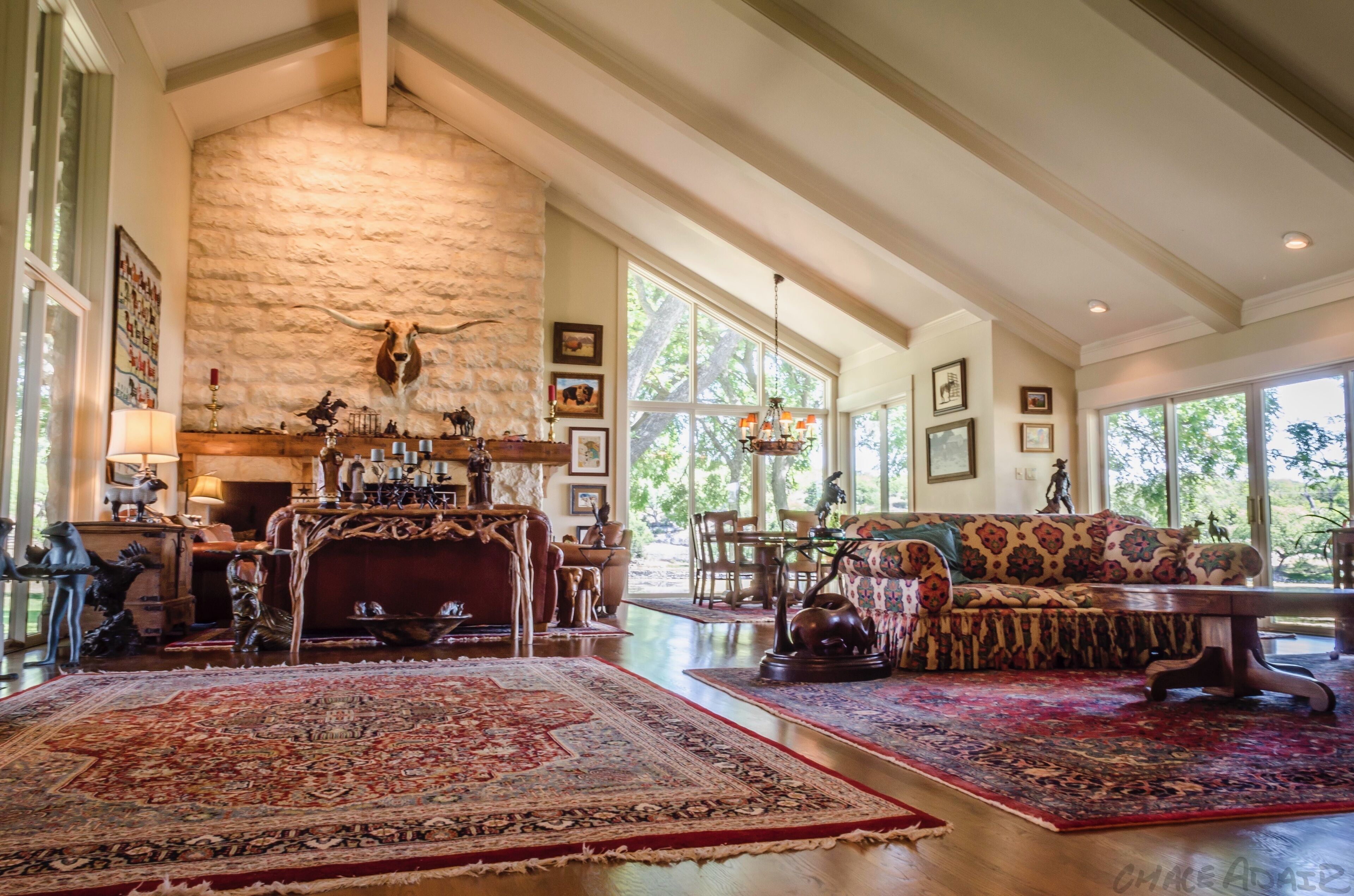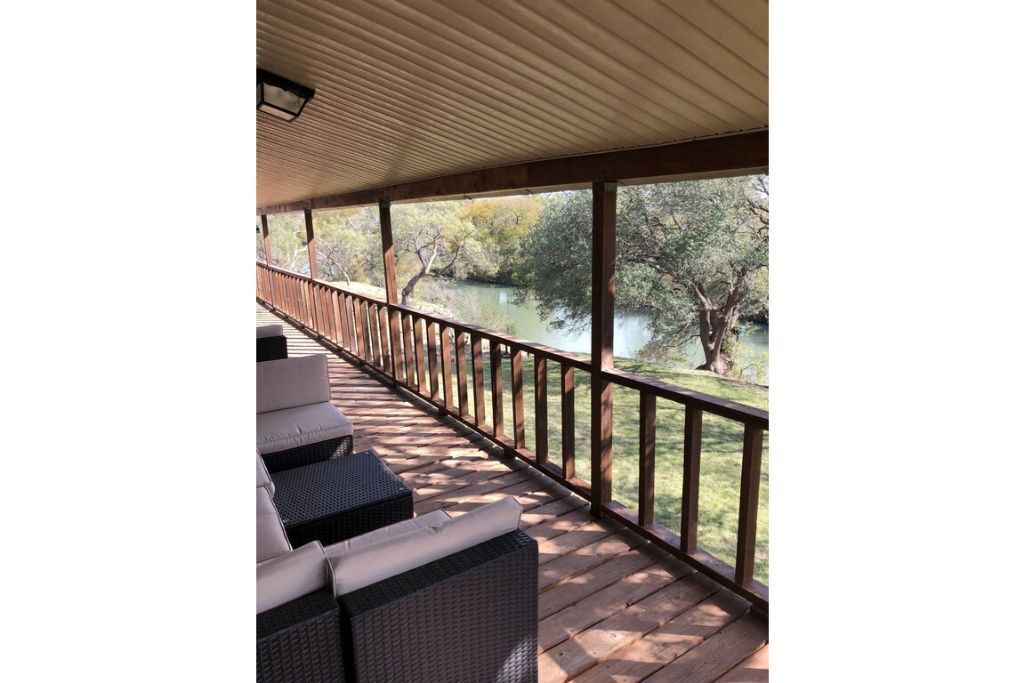 The most appealing features are the banks of windows providing panoramic views of the San Saba River. A deck attached to the sitting room is ideal for coffee or cocktails while nature-watching.