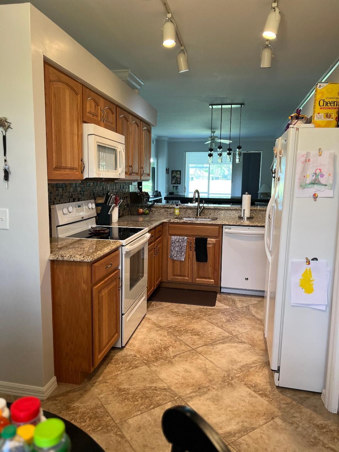• The newly renovated kitchen (granite, tile, stainless steel appliances) has all the amenities for dining in or the casual meal on the run.