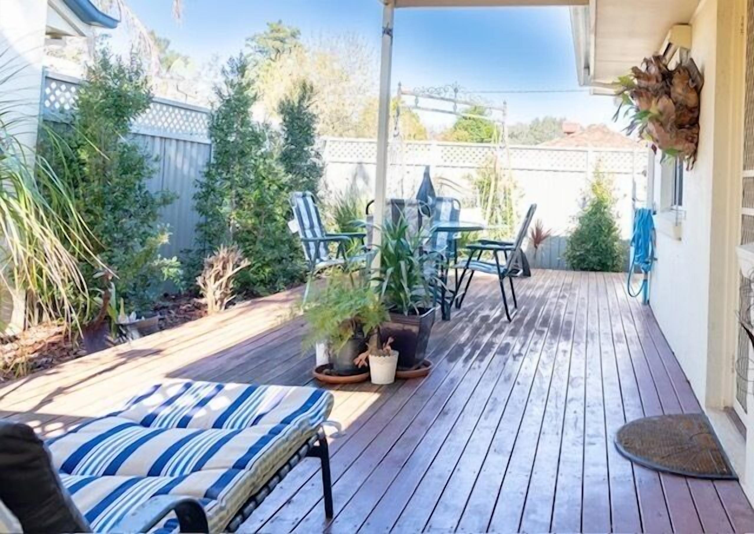 Kennedy House Euroa is a quality home with privacy for up to 6 guests when booking with Stayz, with free secure undercover parking. The house is on a large block with trees, garden and terrace for relaxing, along with an alfresco area.