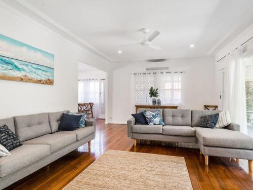 This comfortable two-bedroom, two-bathroom holiday home offers a relaxed coastal escape just a short stroll from the beach and the heart of town. With two separate living areas, each featuring a TV, complimentary Wi‑Fi, ceiling fans throughout, and thoughtful touches like an internal laundry and dual bathrooms, it's a practical and inviting getaway for families or friends. Located in a walk‑everywhere spot, you'll find cafes, shops, and scenic Main Beach within easy reach. Parking is easy too, with ample street options available.