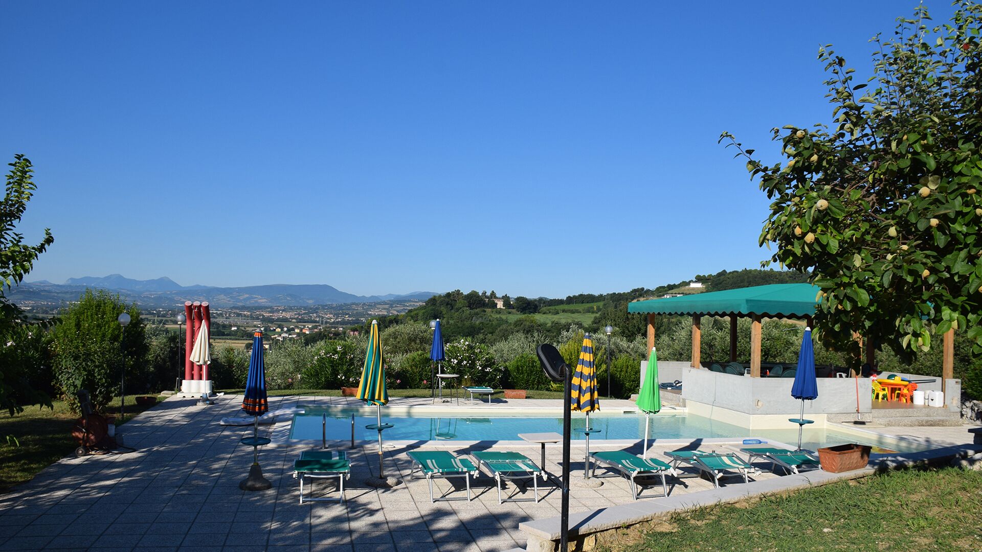 Villa Pomegranate is surrounded by beautiful olive groves and vineyards that give a pleasant atmosphere. The villa is a country house to relax in the green, just five minutes from the beach, shops and the vibrant city of Fano. The pool has a shallow area for relaxing moments and where children can play safely. The porch is fully equipped for outdoor dining and relaxing, the guests comfortable sofas Outdoor. Less than 2 km from the Villa, there is the main house with its gourmet restaurant, golf course, and internet access.