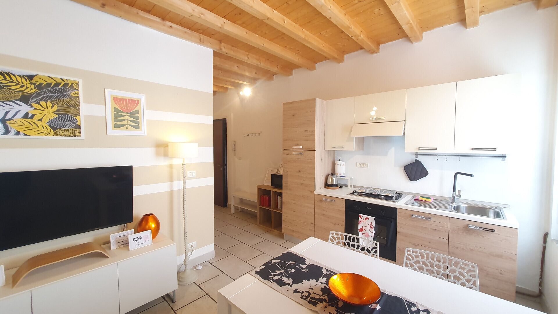 The apartment with a modern and vibrant atmosphere has a living room with kitchen, a spacious double bedroom, both with large terraces and a sparkling bathroom with shower.
