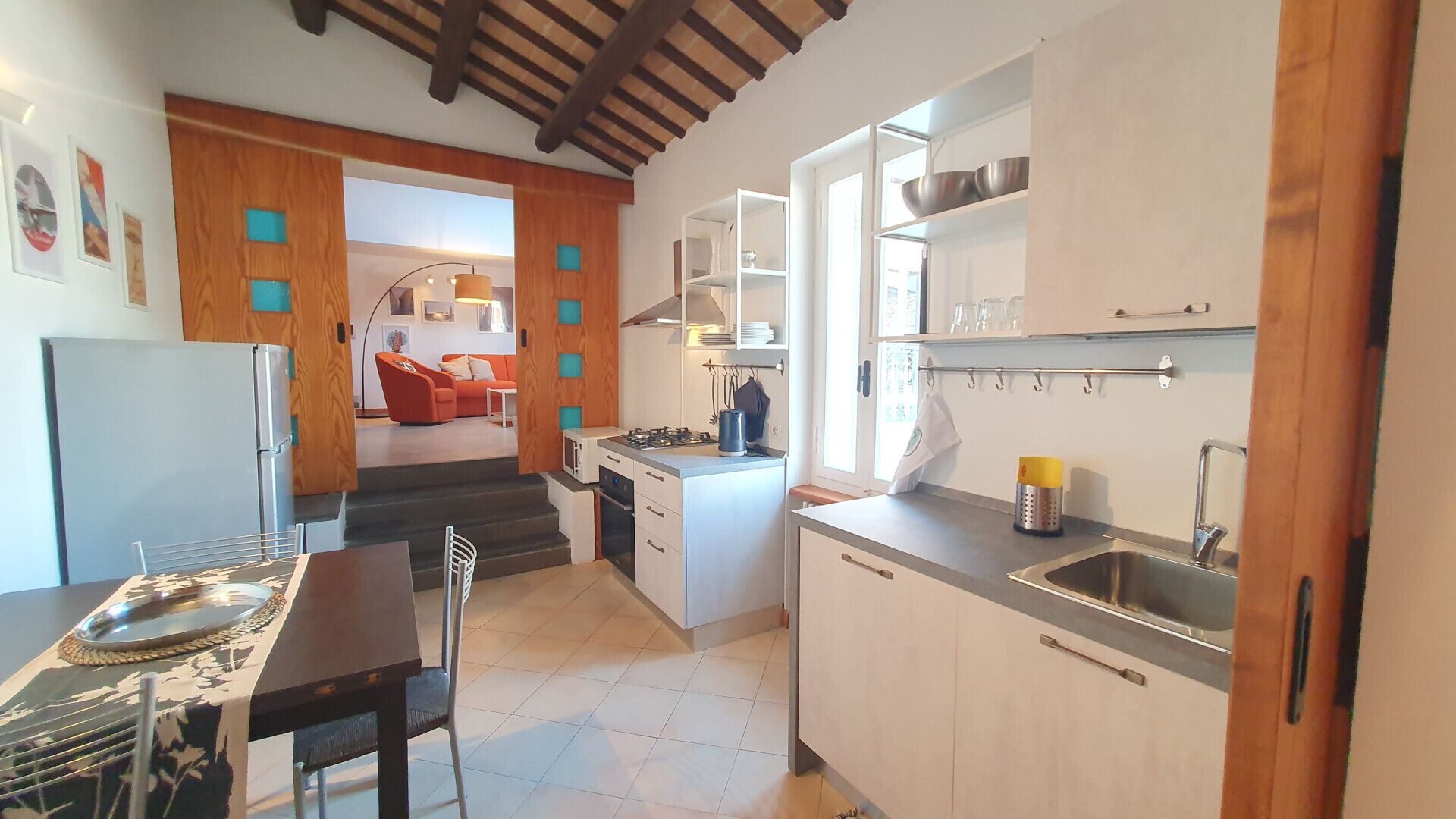 The elegant and bright apartment is personalized with unusual geometric inserts on the walls with shades from blue to sky blue. It has 2 large bedrooms with matching single beds perfect for 6 people and is equipped with everything you need for a pleasant stay. It is structured on 2 floors, kitchen, living room with sofa bed, bathroom and bedroom on the 1st floor and a large 20 sqm attic with terrace on the 2nd floor.