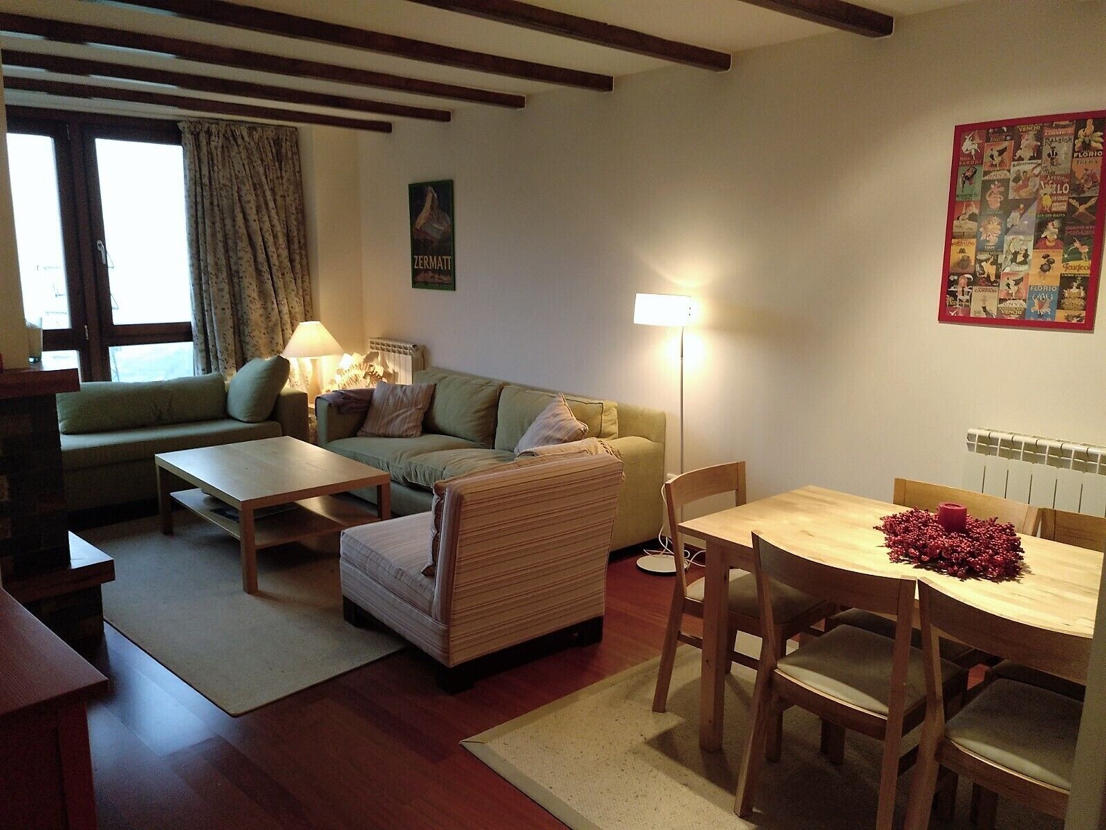 The apartment: has two rooms (double bed 135 cm and 4 bunk beds of 90 cm) for a maximum of 6 people. Equipped kitchen and a large terrace where barbecue or eating in good weather. Living room with glass with direct views of the slopes.