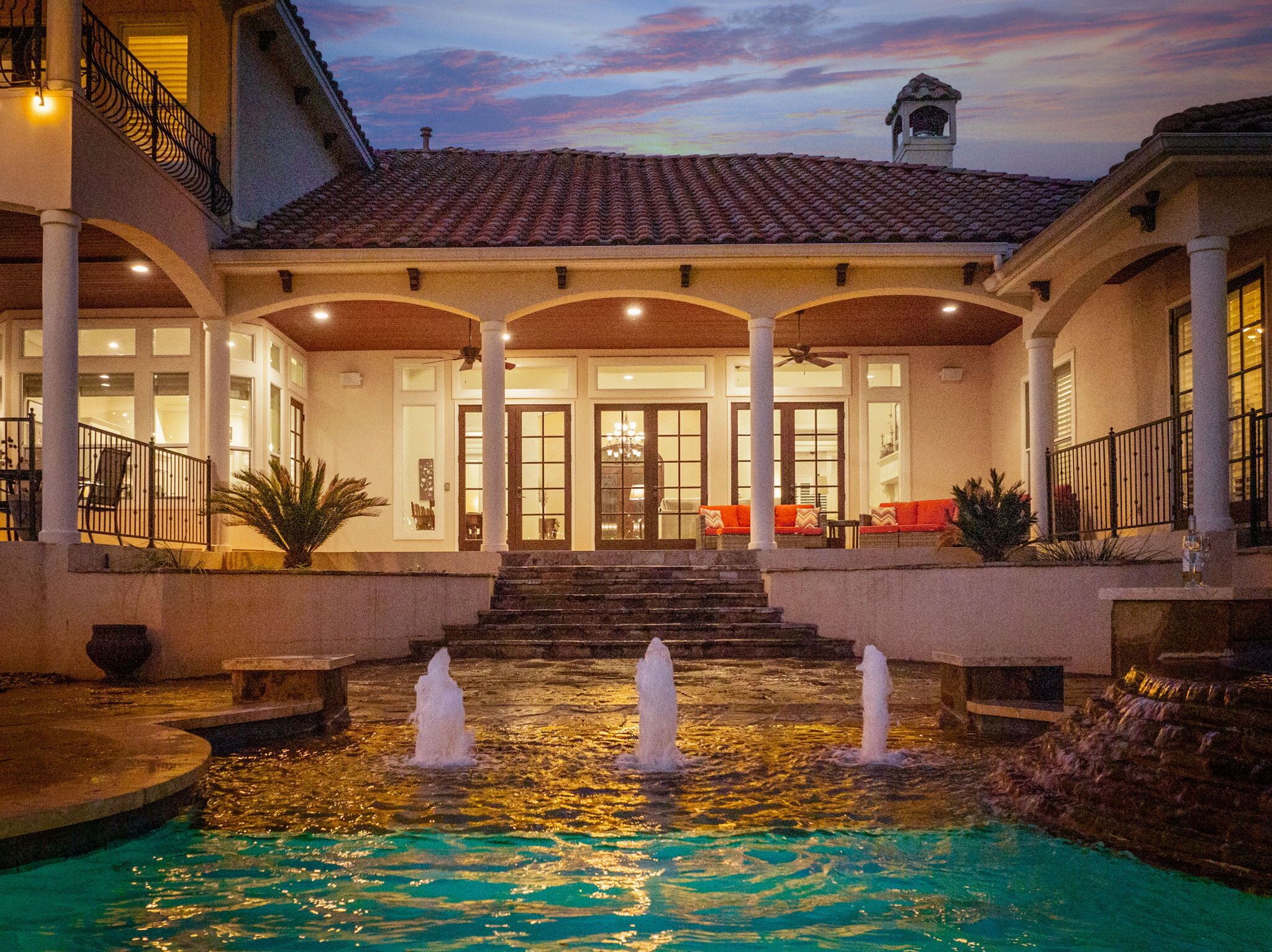 → Full backyard patio with seating and outdoor dining area.