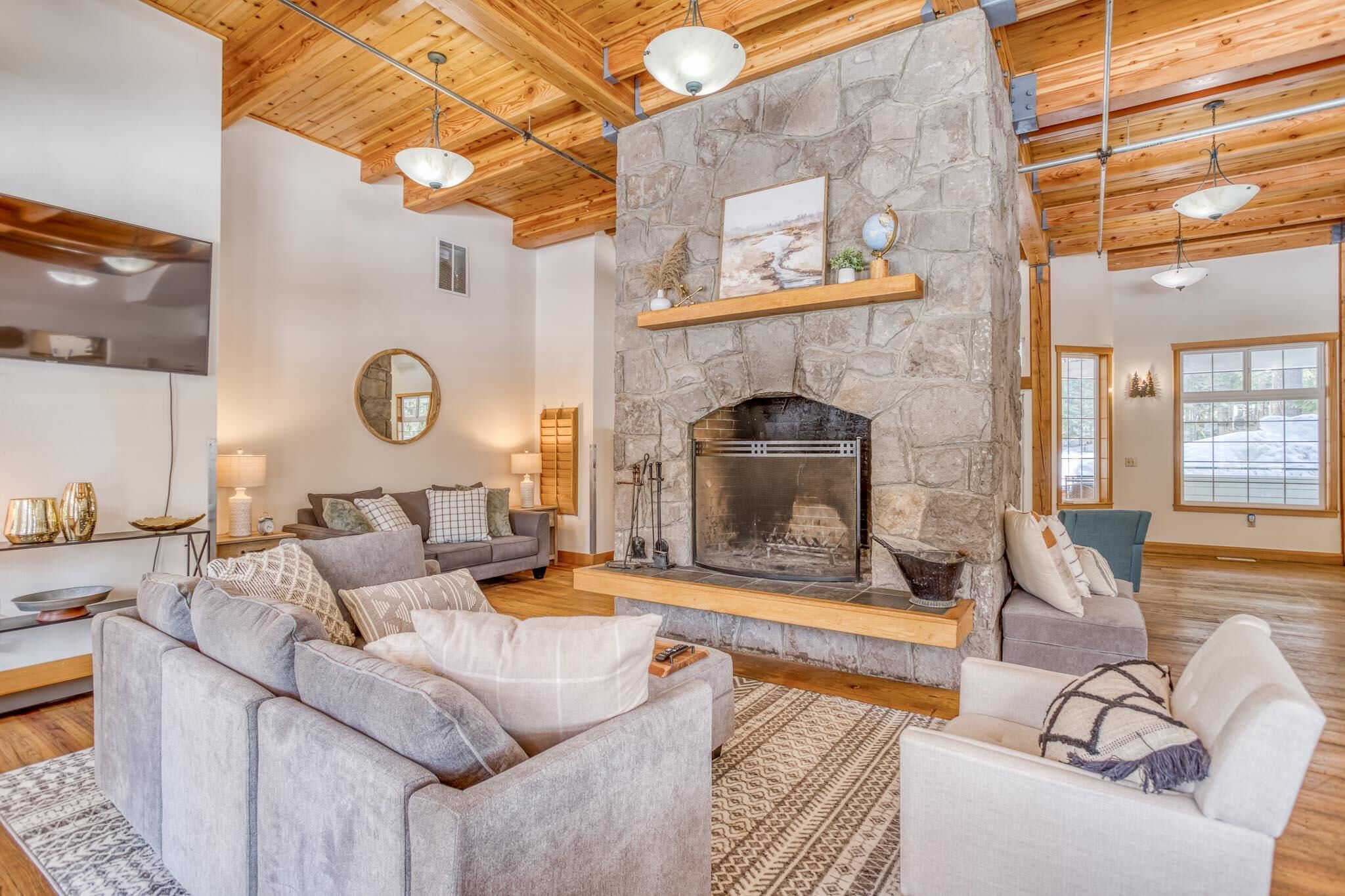 Living Area: Unwind by the cozy fireplace, watch your favorite shows on the cable TV, or enjoy a meal in the fully equipped kitchen. Step out onto the patio with a barbecue to savor al fresco dining amidst the fresh mountain air.